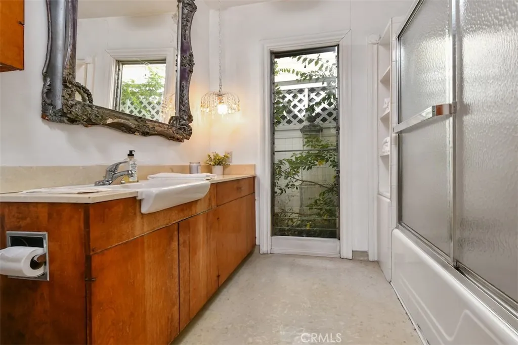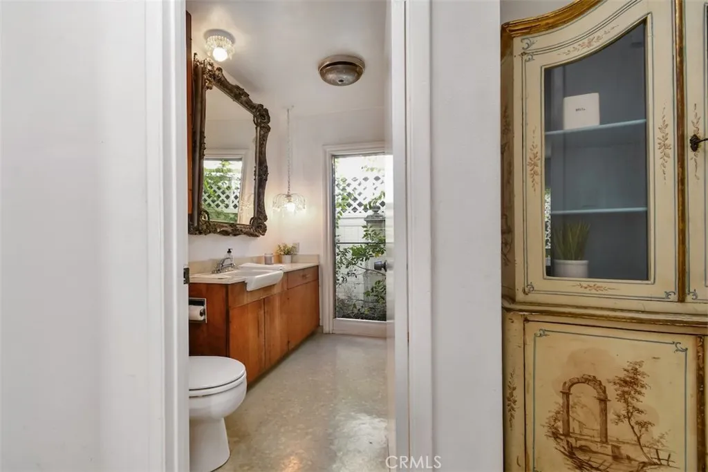 Located in the heart of West Hollywood, just blocks from Cedars-Sinai and a short drive to Beverly Hills, Melrose, and LAs best shopping and dining, this unique mid-century home offers both practical living and endless possibilities. Towering shade trees, charming sidewalks, and mature landscaping define this highly sought-after neighborhood near Rodeo Drive, The Grove, and LACMA. Lovingly maintained by the same owners since 1960, the home is an architectural showpiece filled with character. The living room features handcrafted moldings, detailed woodwork, and a striking walnut wall unit framing the fireplace. The dining area glass doors open to a landscaped side yard, while the adjacent bar crafted from rare Wormy Chestnut and illuminated by stained glass adds vintage charm. Nearby the updated kitchen blends modern style with mid-century flair, showcasing glass tile, new cabinetry, and stainless appliances. A bright breakfast nook, highlighted by a period light fixture and large window, brings in abundant natural light. Three spacious bedrooms offer unique details; the large front bedroom has three closets and built-in shelving, the middle is ideal for an office or bedroom, and the rear bedroom offers versatile possibilities. The backyard is a private retreat, with multiple seating areas, a fire pit and spa. The bonus room offers versatile space as a studio, with ample closets and shelving ideal for creative projects or additional storage. Mature fruit trees, including orange, white peach, and lemon, complete the serene setting. Additional features include a carport with s