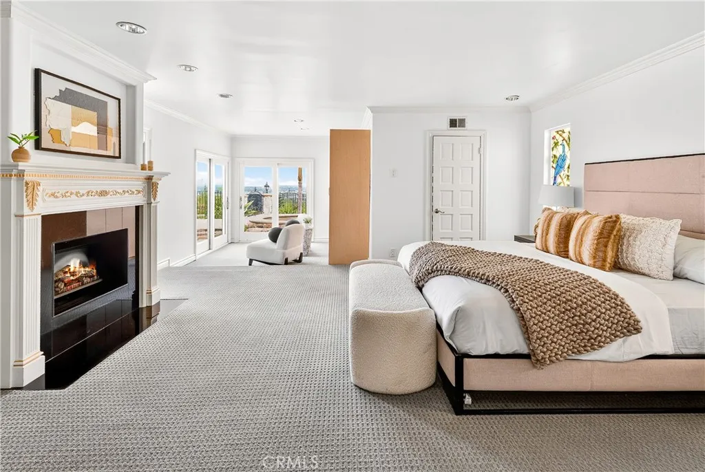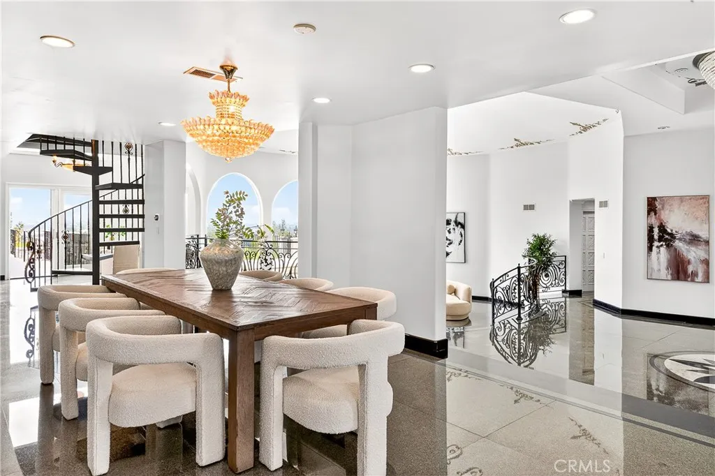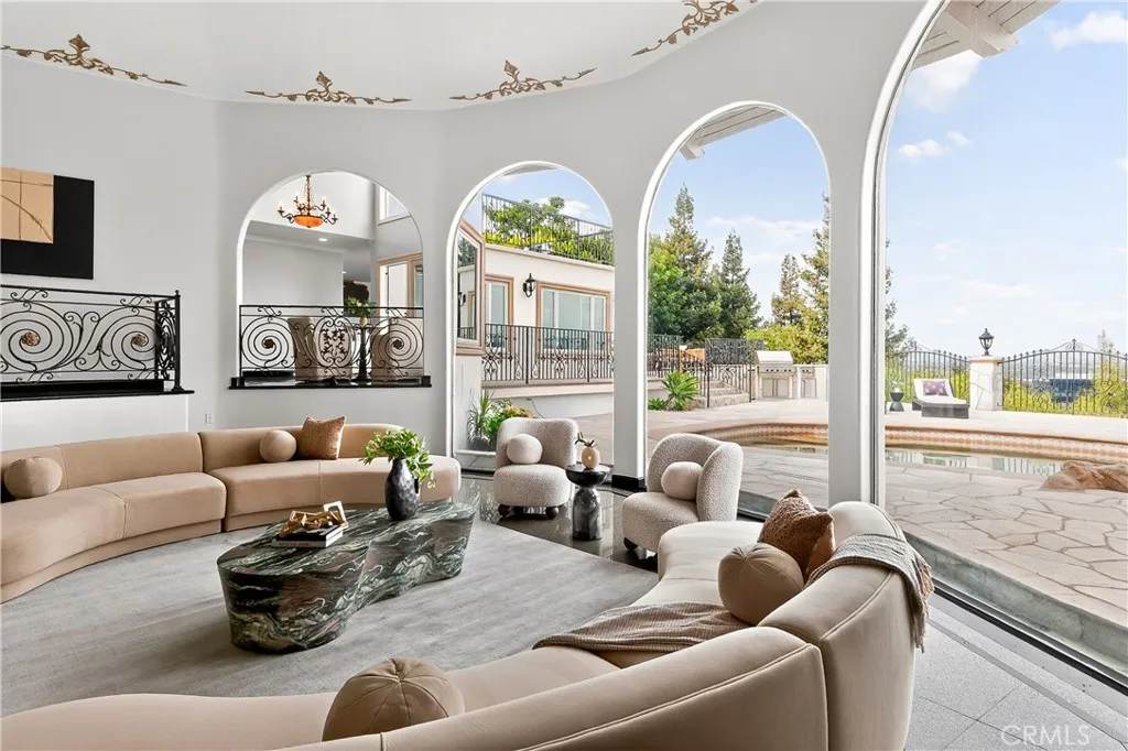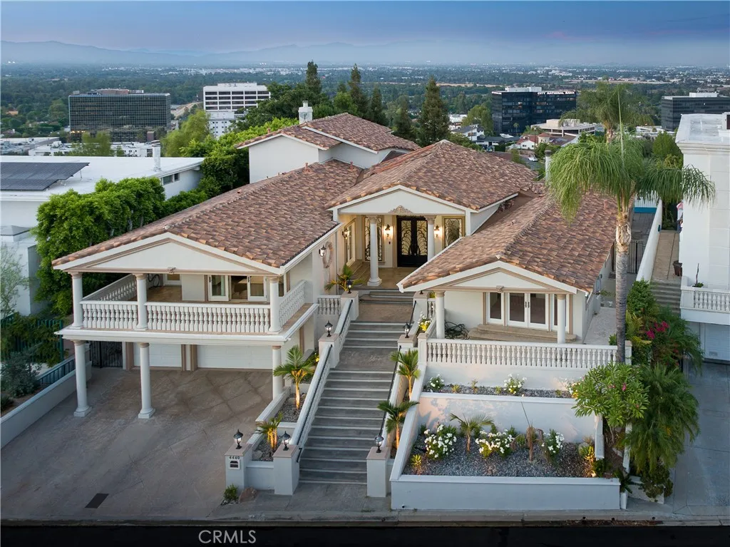 Perched above Ventura Boulevard in the highly desirable Encino Hills on a quiet cul-de-sac. Prominently positioned on an elevated lot with jaw-dropping 180-degree valley views, this exceptional 2-story home features over 5,600 square feet of living space, 5 bedrooms, and 7 bathrooms. A dramatic formal entry features soaring ceilings, a striking dome with a stunning chandelier, and three oversized windows perfectly framing the panoramic valley views. The main level showcases bright and expansive living spaces, filled with natural light and finished with granite floors throughout. A gourmet kitchen outfitted with a Viking cooktop, Sub-Zero refrigerator, generous cabinetry, and ample counter space opens to the living and dining areas, ideal for entertaining. The main level also offers multiple bedrooms and flexible living arrangements. The primary suite is spacious and serene, featuring the incredible views, a walk-in closet, and a luxurious spa-like en-suite bathroom. A spiral staircase leads to a private loft-style suite with its own bathroom, closet, and balcony ideal for a guest retreat, home office, or media room. The backyard is an entertainers dream, completely private and thoughtfully designed with a resort-style PebbleTec pool and spa, an outdoor shower, and an expansive patio with multiple balconies to enjoy the view. Other highlights include an oversized 5-car garage with an EV charger and ample storage space. Located in the highly coveted Lanai Road School district, and near many top-rated private schools. Close to premier shopping, dining, and entertainment along