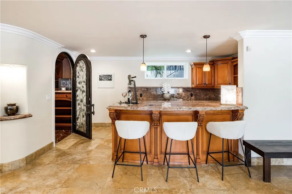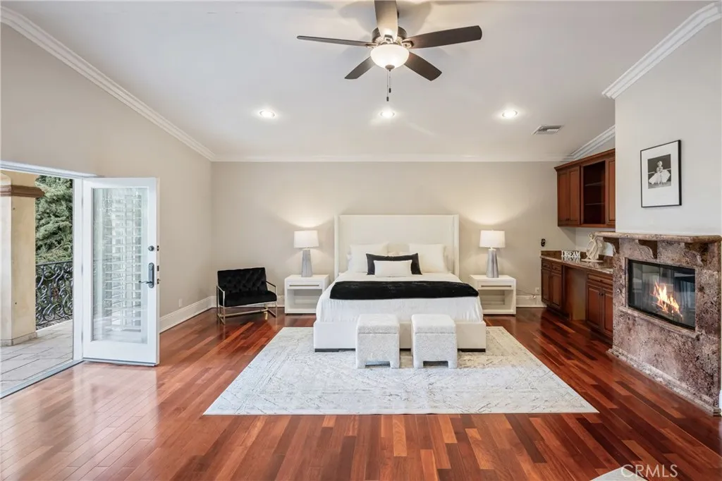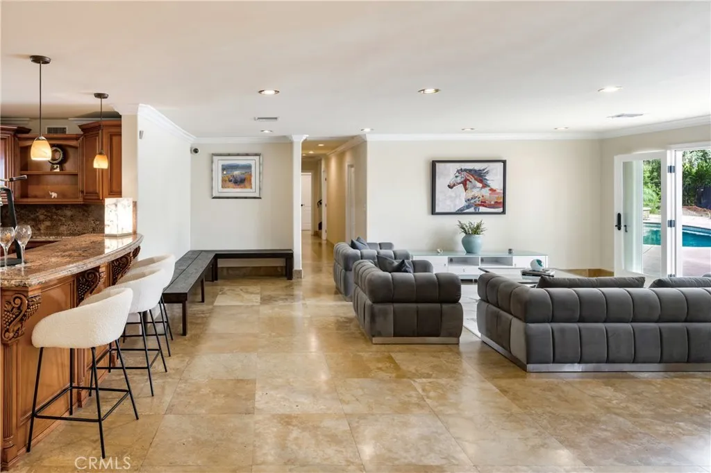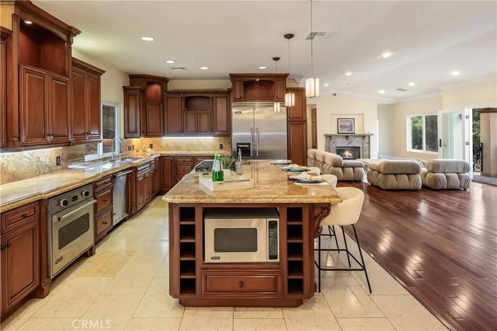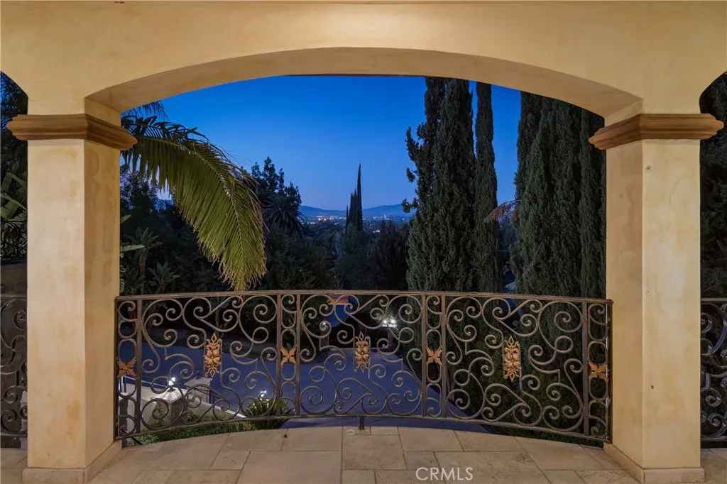 Behind private elegant gates, this breathtaking residence offers timeless elegance, privacy, and panoramic valley views. A grand 25-ft entry tower with Venetian plaster, dramatic banisters, and exquisite flooring sets the tone for the craftsmanship found throughout. The gourmet chefs kitchen features granite counters, custom cabinetry, Viking appliances, and a large center island with garden viewsperfect for entertaining. Two main-level bedroom suites, a full bar, wine room/humidor, dumbwaiter, and laundry chute add convenience and luxury. The primary retreat is a true sanctuary with Brazilian cherry wood floors, Carrera marble spa bath, fireplace, wet bar, balcony, and dual walk-in closets. Additional en suite bedrooms provide comfort and privacy for family and guests. Resort-style outdoor living awaits with a sparkling pool & spa, Viking BBQ, fire pit, and expansive entertainers patio. A rare 6-car tandem garage ensures ample parking, while lush landscaping and long private driveway offer seclusion. Built with no expense spared, this estate blends Old-World charm with modern amenities. Close to golf courses, hiking trails, Ventura Blvd dining, shops, and more. This home defines luxury living in prime Tarzana. AVAILABLE FOR RENT UNFURNISHED $15,900