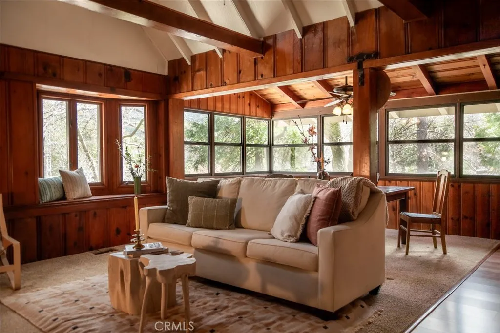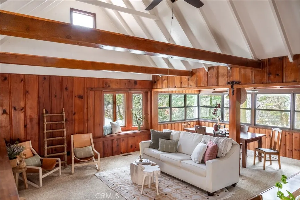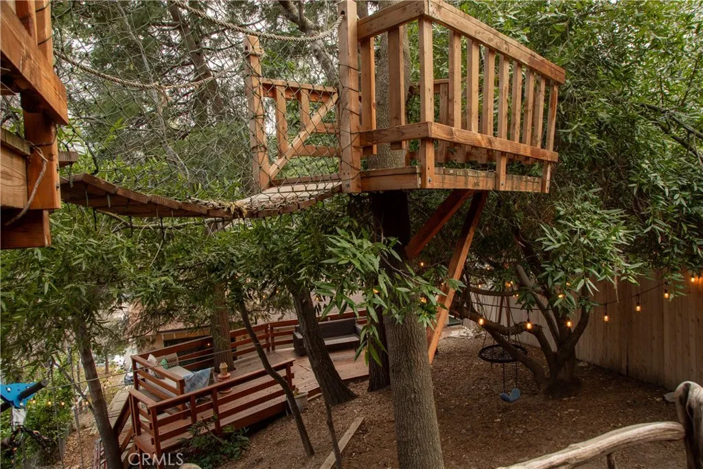 This unique and charming mountain home exudes warmth and character, featuring a classic pine interior, indoor hot tub made for fun and a brick fireplace with wood-burning insert. Located just moments from Lake Drive, you can easily enjoy local coffee, restaurants and shopping. With a thoughtfully remodeled and well-updated modern kitchen, it strikes a combination of old-world allure and contemporary living making this mountain property truly special. Bedroom one is a cozy nook, perched above the open beamed living room, while a second bedroom is on the main level and has a large walk-in closet. Unwind on the expansive deck; or enjoy endless fun in a unique treehouse, thoughtfully equipped with electricity, bunk beds, two lookout posts connected by a bridge, a zip line and slide. This extraordinary play fort offers a magical retreat filled with adventure! Nestled away from the hectic pace of daily life but a quick drive from the city below, this property provides a serene getaway while still being close to various conveniences. The newly rebuilt Goodwins Market presents a delightful selection of rare and gourmet foods to elevate your mountain retreat experience. Whether you're looking for a full-time home, weekend retreat or vacation rental, this captivating home promises to create a lifetime of cherished memories.