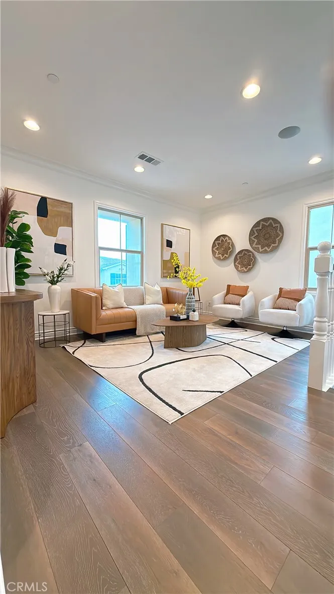 Exquisite Luxury Living at 54 Hearst, Irvine A Stonegate Village Gem Nestled in the prestigious community of Stonegate Village in Irvine, this stunning 4-bedroom, 4.5-bathroom home with a loft offers the perfect blend of elegance, comfort, and modern functionality. Step inside to discover a gourmet chefs kitchen designed to impress, featuring a large center island, quartz countertops, full stone backsplash, designer cabinetry, walk-in pantry, and top-of-the-line stainless steel appliancesincluding a refrigerator, 6-burner range, oven, microwave, and wine fridge. The open-concept main floor is ideal for both entertaining and everyday living, with a spacious living room, formal entry, and a seamless indoor-outdoor flow into the California room. A main-floor bedroom with full en-suite bath, beautiful wood flooring, cozy fireplace, and recessed lighting throughout complete the elegant ambiance. Upstairs, the luxurious primary suite showcases a tray ceiling with crown molding, a custom walk-in closet, dual vanities, a tempered glass shower, and a relaxing soaking tub. Each secondary bedroom includes its own en-suite bathroom, and the spacious loft offers flexible living space for a home office, playroom, or media area. Step outside to your cute, private backyard oasis, filled with charm and functionalityfeaturing more than 8 fruit and citrus trees that bring seasonal color, fragrance, and fresh produce right to your door. Whether youre entertaining guests or enjoying a quiet morning coffee, this yard offers the perfect outdoor retreat. Sustainable upgrades include 9 solar panel