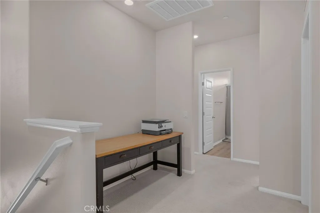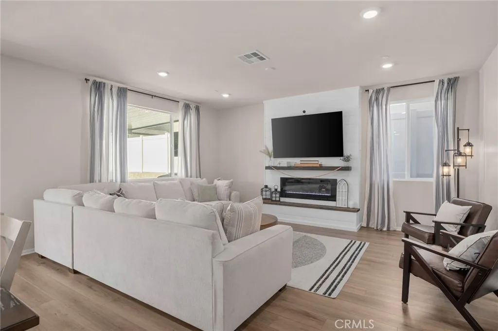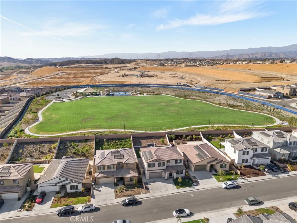 This stunning home boasts excellent curb appeal, pristine upkeep, and low-maintenance landscaping, all with a beautiful view of the local mountains. One of its most valuable features? A fully paid-off solar systemproviding significant energy savings from day one with no lease or loan to assume! Step inside through the elongated entryway to find stylish LVP flooring that flows throughout the main level. A versatile den or home office sits near the front of the home, along with a guest bedroom and a full bathroom featuring a charming shiplap accent wall. The spacious family room is the heart of the home, showcasing a cozy fireplace framed with a custom shiplap enclosure. The open-concept kitchen overlooks the family room and dining area, offering a large kitchen island, quartz countertops, porcelain tile backsplash, walk-in pantry, and built-in cooktopperfect for both everyday living and entertaining. Upstairs, youll find a massive loft, an oversized primary bedroom retreat with a deep walk-in closet, and a spa-like primary bath with a walk-in shower. Three additional bedrooms, a bathroom with dual sinks, and a convenient upstairs laundry room complete the second floor. The backyard is an entertainers dream, featuring a large covered patio with lighting and ceiling fans, stamped concrete, a built-in fire pit, rock wall, lush green grass, and beautiful landscaping. A 3-car tandem garage offers plenty of parking and storage space. Best of all, this home backs up to a large park with a walking trail, sports court, and playgroundperfect for outdoor enjoyment. Immaculately maintai