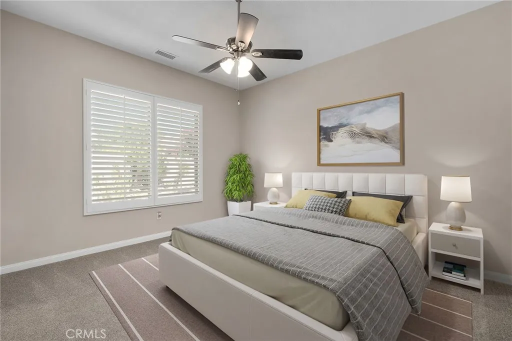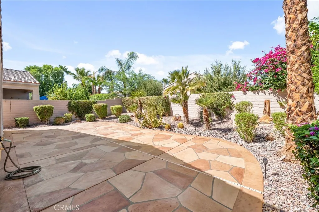 Experience resort-style living in this beautifully upgraded Montoya floor plan, located in one of the deserts most desirable 55+ guard-gated communities Sun City Shadow Hills! This 2-bedroom, 2-bath home with den/office offers an open, light-filled layout thats perfect for entertaining friends or simply relaxing in style. The chefs kitchen features granite counters, stainless appliances, and new cooktop & microwave. Enjoy new carpet, wood shutters, tile floors, and ceiling fans throughout. Step outside from the living area to a covered patio with flagstone concrete and a ceiling fan, overlooking a low-maintenance landscaped backyard, ideal for morning coffee or sunset gatherings. The primary suite offers a walk-in closet and a bathroom with dual vanities and a walk-in shower with glass doors. Additional highlights include a laundry room with sink and a two-car garage with storage racks and its own A/C unit, perfect for a workshop or hobby space. This move-in ready home invites you to start enjoying year-round resort living with pools, fitness center, pickleball, tennis, bocce, golf, clubs & 24-hour guard-gated security.