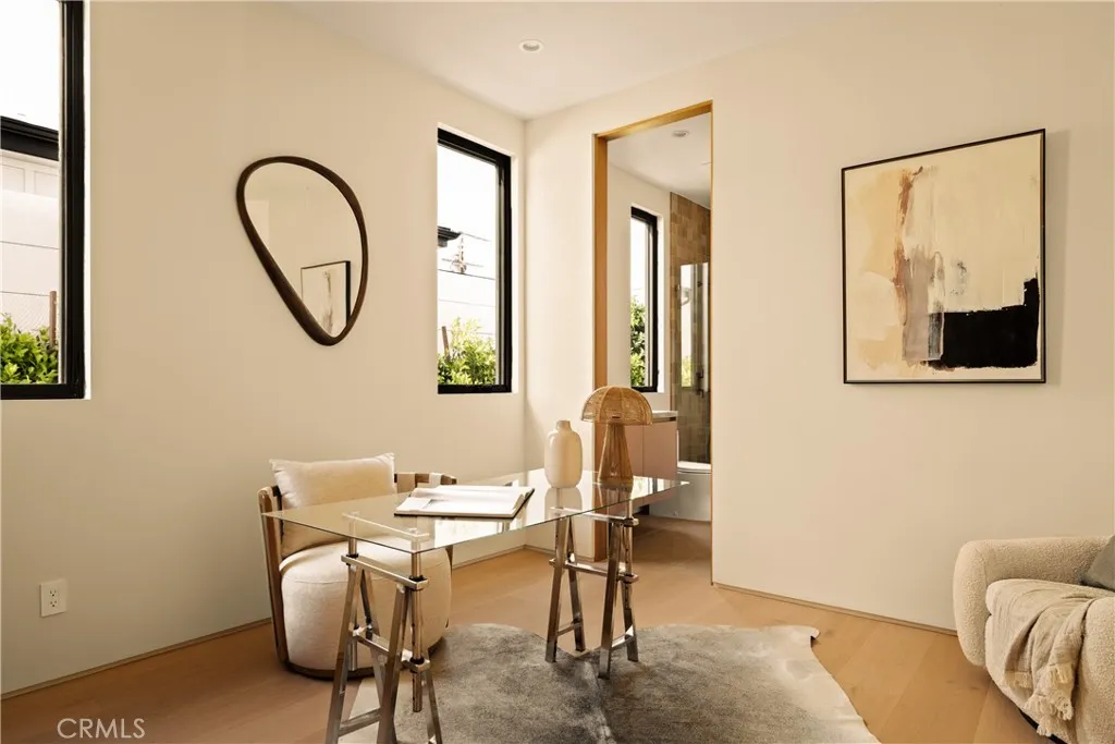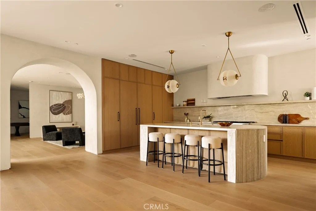 Introducing The Enfield, a newly built Scandinavian-inspired estate tucked within one of Encinos most sought-after neighborhoods. This modern showpiece spans approximately 5,200 sq ft and features 5 bedrooms, 5.5 baths, plus a private 1-bedroom ADU with its own entrance. The interiors impress at every turn: soaring ceilings, a dramatic spiral staircase, and wide-plank French oak flooring set the stage. At the heart of the home lies a chefs kitchen appointed with an oval Quartzite island, Quartzite countertops, Thermador appliances, and custom cabinetry that flows seamlessly into the backyard. The living room is anchored by a marble fireplace, while a private office provides an ideal workspace or additional bedroom. Upstairs, the primary suite offers dual walk-in closets, a stone fireplace, a spa-inspired bath, and a 300-square-foot balcony overlooking the grounds. Perfect for grand entertaining or intimate gatherings, the backyard is a true retreat with a smart-controlled pool and spa, built-in BBQ, and manicured landscaping. Additional amenities include solar panels, whole-home surround sound, EV charging stations, and a fully integrated security system. Now available for lease and also offered for sale, The Enfield is ideally suited for discerning families, entertainers, or influencers seeking modern luxury in a prime location between Hollywood and Beverly Hills. Ideally positioned near places of worship, the esteemed Crespi Carmelite School, and Encinos finest family-oriented amenities, this residence offers both convenience and prestige. An expansive and elegant retreat