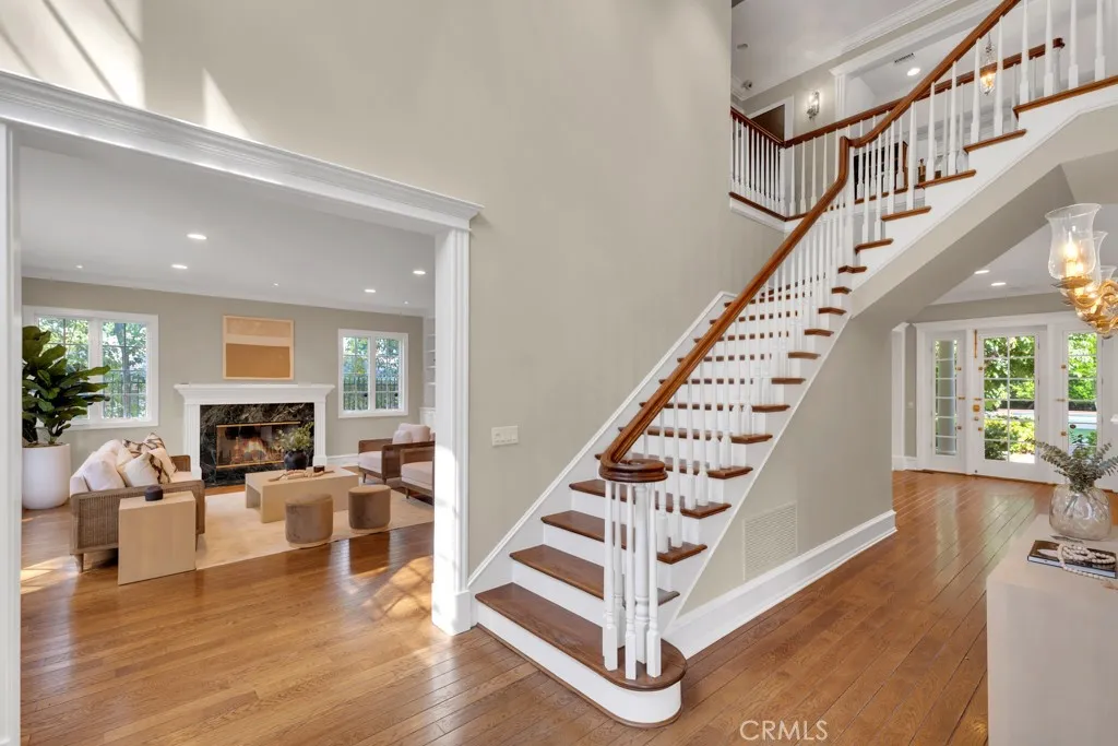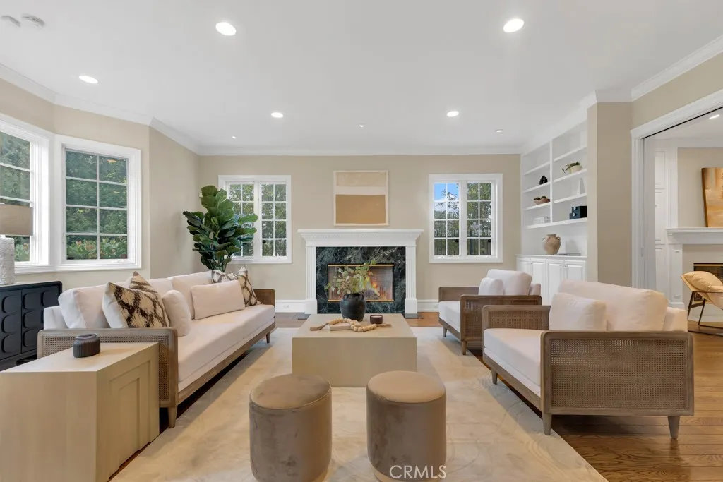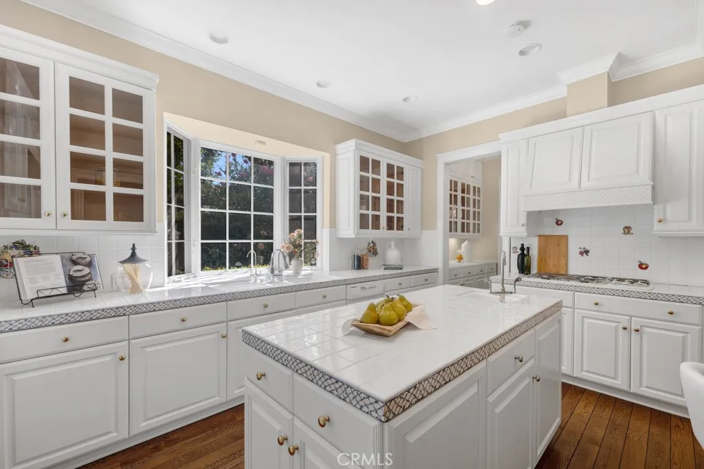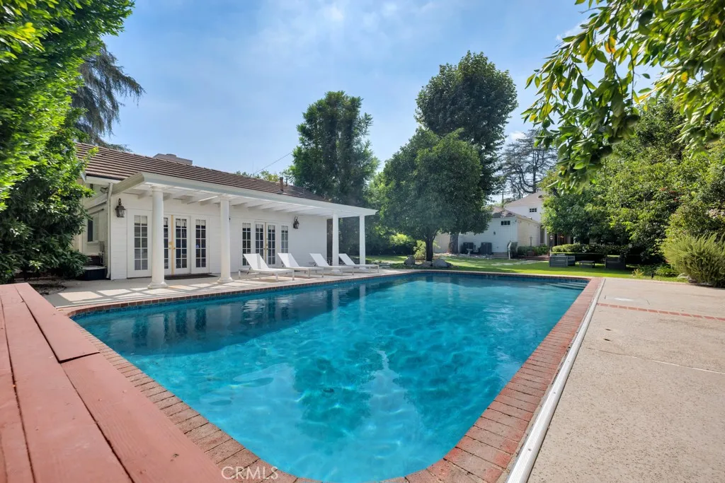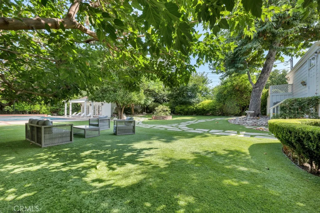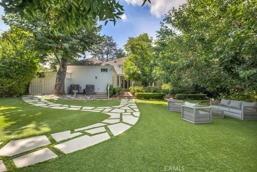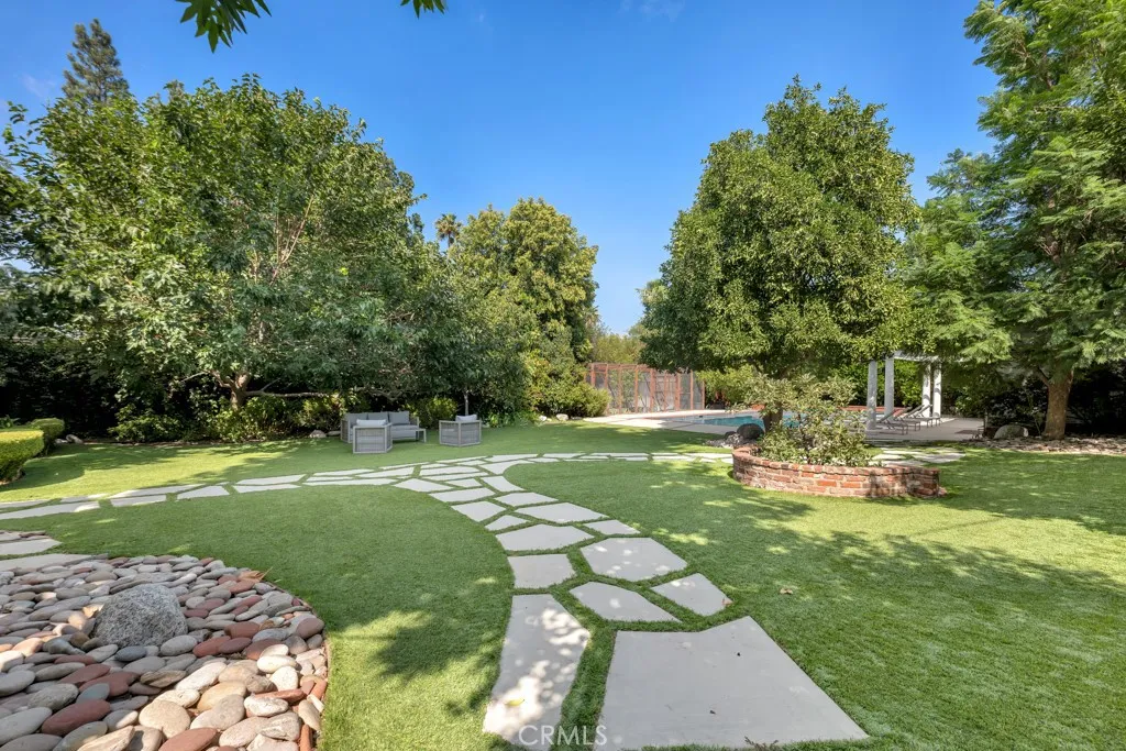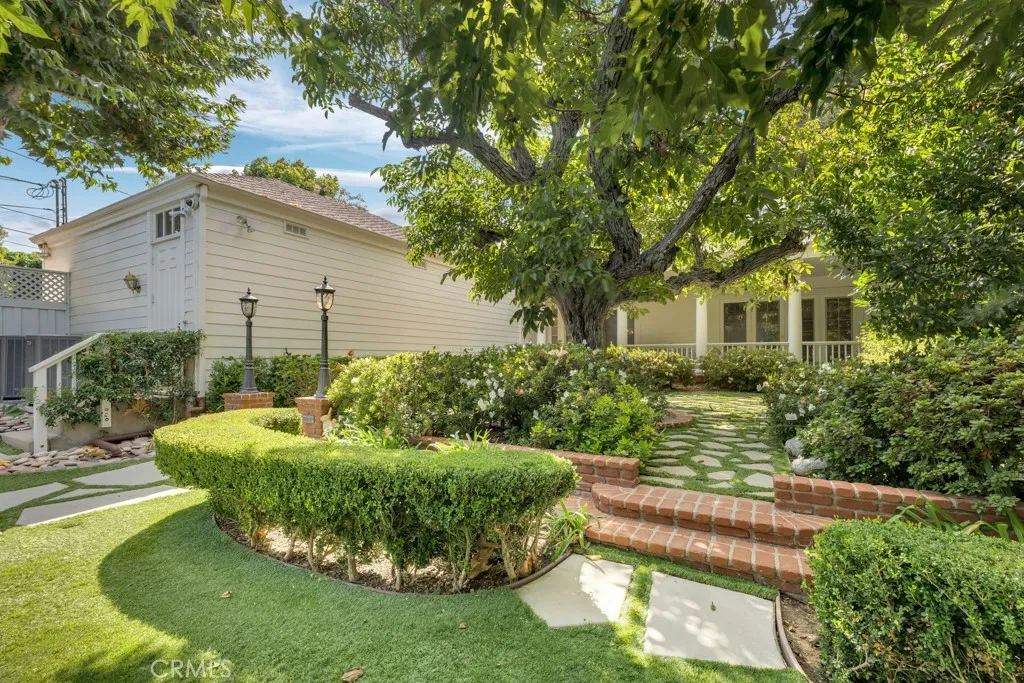 Tucked behind private gates in one of the most coveted South of the Boulevard neighborhoods, this stately Georgian estate sits on a rare, flat 18,546 sq. ft. lot surrounded by lush greenery and mature trees. Built in 1997 with timeless design and soaring 10-foot ceilings, this home offers both sophistication and warmth, blending classic elegance with everyday comfort. From the moment you enter the grand foyer, youre welcomed into a home designed for entertaining and gathering. The formal living and dining rooms set the stage for memorable celebrations, while the spacious family room with its French doors leading to the gorgeous covered patio invite more casual moments. Overlooking a blooming rose garden, the kitchen features a center island, walk-through butlers pantry, and abundant storagemaking it the heart of the home. Upstairs, the primary suite is a private retreat, complete with French doors that open to an expansive balcony with sweeping views of the lush grounds. The spa-like bathroom offers a soaking tub, dual vanities, and a separate shower, while double walk-in closets provide ample space. A handsome library with built-ins and balcony access creates the perfect escape, and two additional en-suite bedrooms ensure comfort for all. The outdoors feel like a private sanctuary. A sparkling pool with automatic cover is ideal for long summer days, while the expansive grounds include an enclosed vegetable garden with raised beds and an orchard of fruit treesapple, avocado, pomegranate, citrus, and walnut to name a fewbringing both beauty and bounty. A charming 400 sq. ft.
