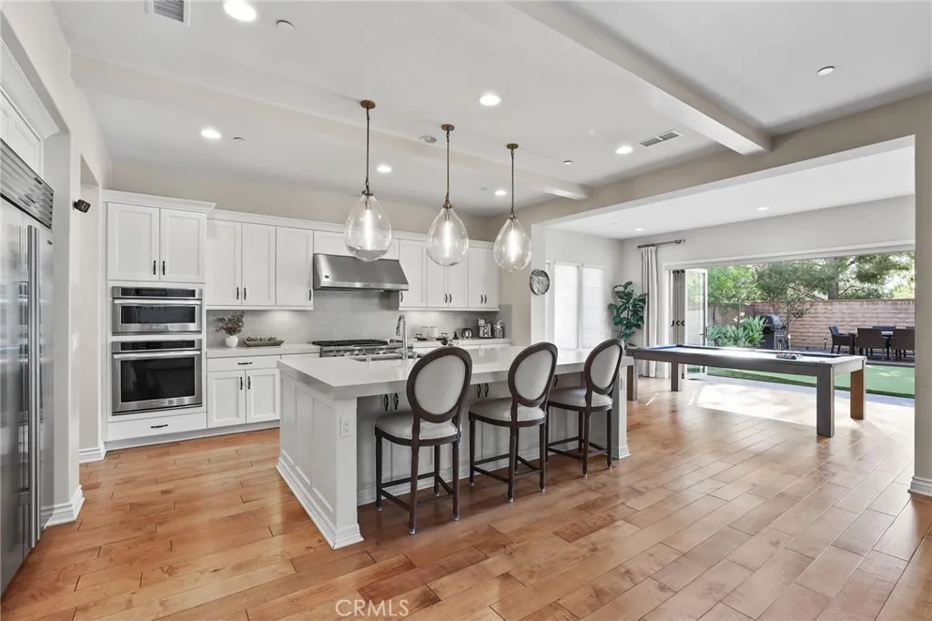 Behind the prestigious gates of The Groves at Orchard Hills, this distinctive residence showcases breathtaking designer finishes that set it apart from every home in its class. Flooded with natural light, the spectacular open layout features soaring ceilings, wrought-iron accents, rich wood flooring, and dramatic beams, creating an inviting space for both luxurious family living and grand entertaining. The chef-inspired kitchen is a true showpiece with sleek white cabinetry, custom countertops, high-caliber stainless appliances, and a large center island overlooking the great room, dining area, and conservatory. Accordion bi-fold doors blur the line between indoors and outdoors, opening to a spacious backyard designed for gatherings and relaxation. The primary suite offers a serene retreat with a spa-like bath and dual walk-in closets, while the generous secondary bedrooms each include en suite baths. A versatile bonus room, upstairs laundry, and an extended main-floor bedroom with private bath ensure functionality and flexibility for modern living. Premium upgrades include Custom window treatments & premier shade system, alarm system & surround sound, Tankless water heater & paid off solar panels, and Built-in EV charger. The backyard oasis is equally impressive, featuring California room, an open artificial grass play area with mini golf green, a wood-paved entertainment space, and a natural stone wall fountain for tranquil ambiance. This turn-key home is complemented by Orchard Hills world-class amenities: multiple pools, a clubhouse, parks, hiking trails, basketball and