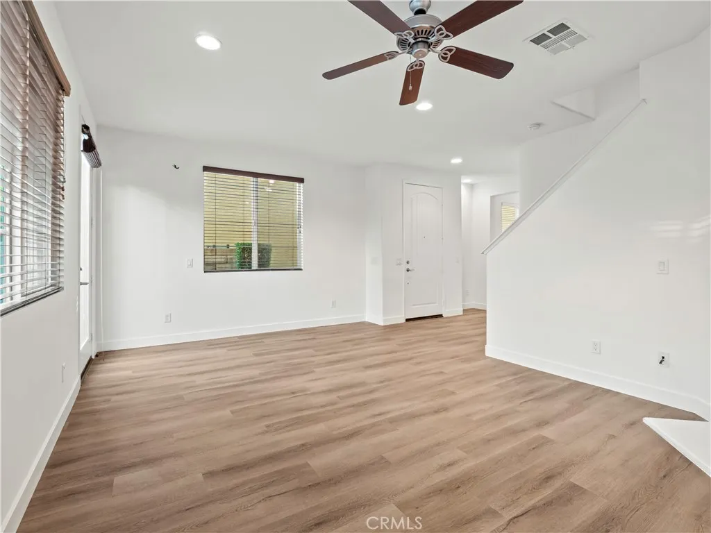 Welcome to this charming 2-bedroom, 2.5-bathroom townhome in the highly desirable Plum Canyon @ Mariposa community. Upon entering, youre greeted by an open living space that flows seamlessly into the kitchen, dining area, and half bathroom. The home features new luxury vinyl flooring, fresh interior paint, and recessed lighting downstairs, creating a bright and modern atmosphere. Step outside to your private backyard with beautiful trees, perfect for relaxing or entertaining. Upstairs, both bedrooms offer en-suite bathrooms, providing comfort and privacy. Additional highlights include a newer water heater, a laundry room, an attached 1-car garage with a 220-volt outlet, an assigned covered carport space, and included appliances for your convenience. Enjoy resort-style amenities including a pool, spa, BBQ area, playground, and clubhouse. With No Mello-Roos and a prime location near top-rated schools and Skyline Ranch Plazafeaturing Starbucks, restaurants, a market, and morethis home truly has it all!