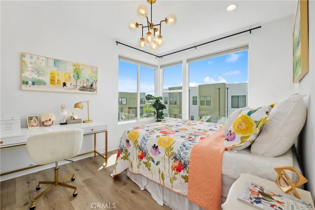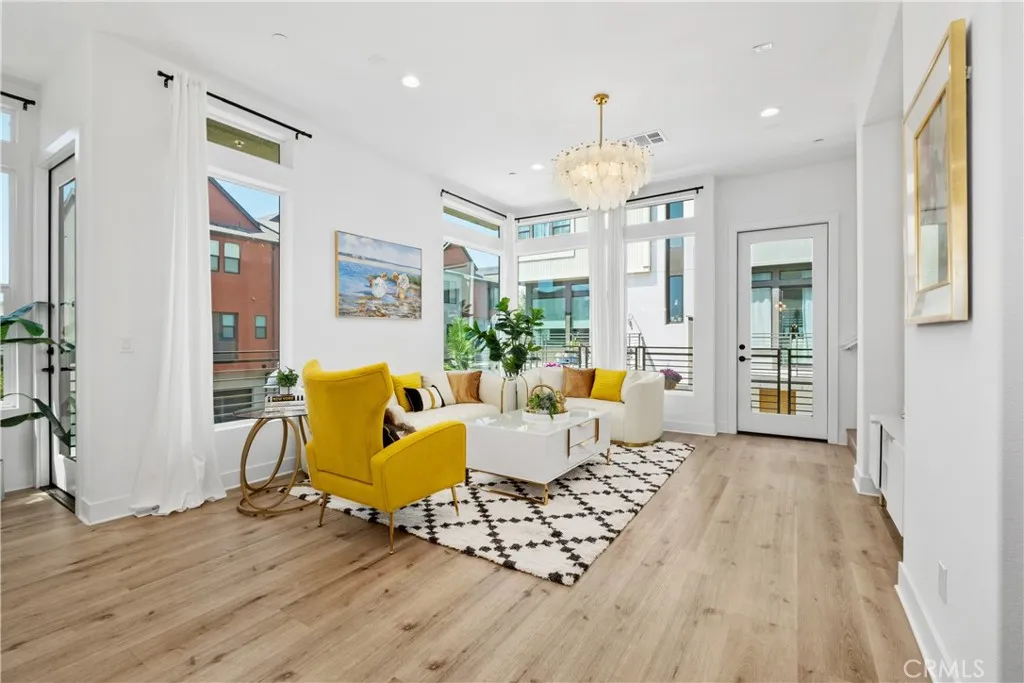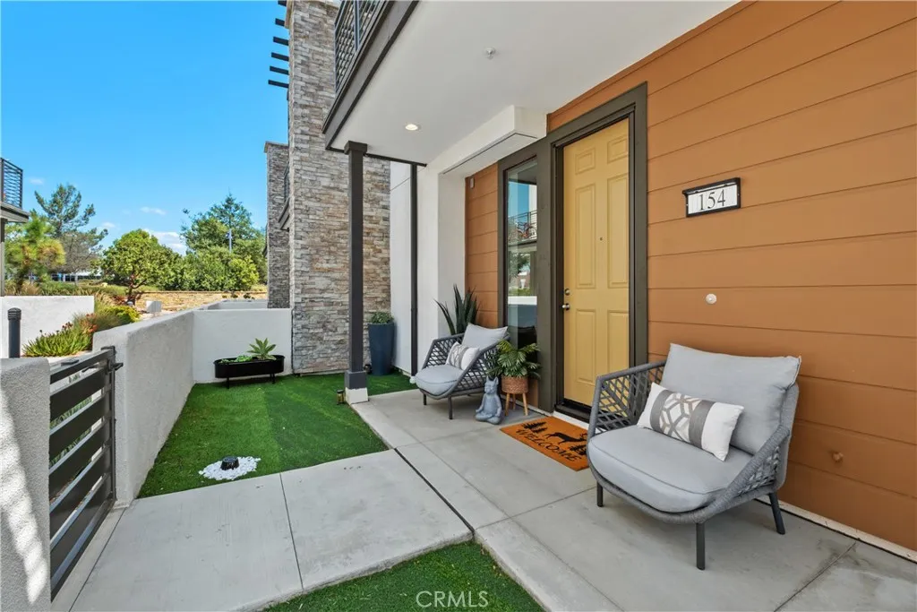 Like-New Luxury Upgraded Turnkey End-Unit Residence in Irvine Great Park NeighborhoodExceptional Value! Just Minutes Walk to top-rated Portola High School and Solis Park School (K8) in the award-winning Irvine Unified School Districtdaily drop-offs are skipped, making life a true breeze for parents. 3 beds, 2.5 baths, and 1,812 sqft of living space. Premium End Unit boasts superior natural light, enhanced privacy, a quieter setting, a larger front yard, and an L-shaped deck. The expansive Open-Concept Layout seamlessly connects the kitchen, living, and dining areas, enhanced by 10-foot ceilings to create a harmonious flow of space. Oversized windows paired with floor-to-ceiling doors bathe the interiors in abundant natural light, accentuating the homes spacious design and luxurious appeal. Tasteful upgrades include whole-house wood flooring, whole-house water softening system, and elegant chandeliers. Stunning primary bedroom suite features a walk-in closet, dual vanity, and a walk-in shower. Two secondary bedrooms are generously sized too. The first floor offers ample storage closets and direct access to a side-by-side 2-car garage. Energy-saving features include leased solar system, EV charger pre-wire, energy-efficient windows,and tankless water heater. Just minutes from Woodbury Town Center, Irvine Spectrum Center, and Kaiser Permanente, etc. Enjoy Great Parks world-class recreational amenities and the state-of-the-art sports complex, with easy access to I-5, 133, 405, and 241. Only 1825 minutes drive to Newport Beach and Laguna Beach.
