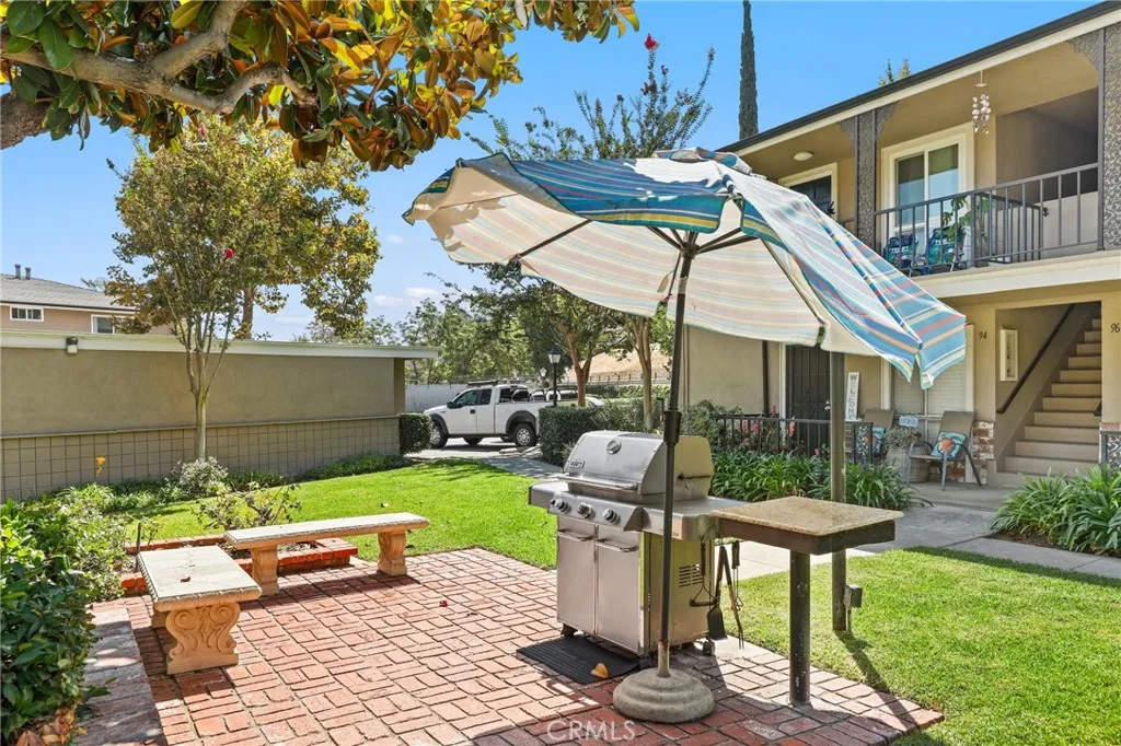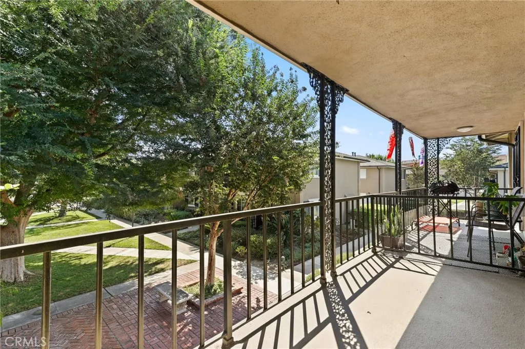 Welcome to this charming upper-level 1 bedroom, 1 bathroom condo offering 593 sq. ft. of comfortable living space in the highly desirable Park Orleans community. This inviting home features a beautifully remodeled kitchen with modern cabinetry, refrigerator, and stove, as well as a remodeled bathroom complete with a stylish vanity. The open floor plan is enhanced by recessed lighting, laminate flooring throughout, dual pane windows, and stylish shutters, creating a bright and welcoming ambiance. This home is being sold FULLY FURNISHED. Stay comfortable year-round with a gas wall heater and wall A/C unit. Step out onto your private balcony overlooking the beautifully landscaped community common area, complete with mature trees and a soothing fountain. Tucked away in a quiet location, this home offers the perfect balance of comfort and tranquility. Parking is made easy with a 1-car garage featuring a newer garage door opener. An additional permitted space is available for a second driver. Community amenities include a sparkling pool, BBQ area, and on-site laundry facility. Low HOA dues include trash and water, adding extra value. Ideally situated across from beautiful Hart Park and just minutes from Chapman University, the Orange Circle, St. Joseph Hospital, and CHOC, youll love the blend of peace, convenience, and easy access to shopping, dining, healthcare, and entertainment. Dont miss this opportunity to own a move-in ready home in the heart of Orange!