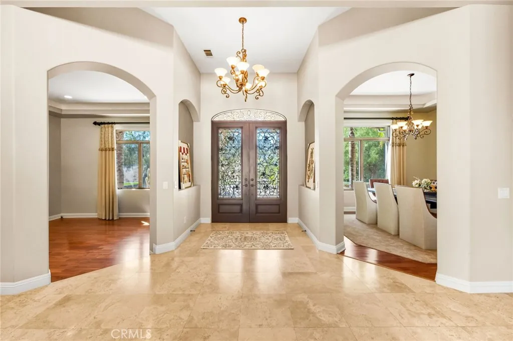 Set on 5.85 acres of mostly flat, usable land, this perfect single story, 3,492 square foot custom estate offers 4 bedrooms and 3.5 bathrooms, located close to the entrance of La Cresta. The automatic gate opens to over 7,000 square feet of custom reinforced concreteperfect for RVs, large vehicles, or ample guest parking. Inside, youll find 10-foot ceilings, 8-foot solid mahogany doors, and 18-inch travertine flooring. The gourmet kitchen is designed for both everyday living and entertaining, with cherry cabinetry, a spacious island with prep sink, wine refrigerator, and premium appliances including a Viking cooktop, KitchenAid double convection ovens, built-in refrigerator, and dishwasher. Formal living and dining room areas feature walnut floors and coffered ceilings with ambient lighting. The primary suite offers a spa-like walk-in shower, jetted soaking tub, dual closets, and elegant finishes. Spend time in the 1,130-square-foot 3 car garage that includes a workbench, attic access, unique ceiling fan, and a 30-foot depth to easily accommodate large trucks. Outdoors, enjoy a built-in Kitchenaid BBQ, fire pit with ambient lighting, terraced landscaping, and a covered patio perfect for year-round gatherings. A 22kW Generac generator provides automatic backup power for peace of mind. 21977 Paseo Chico delivers the best of country living in the prestigious community, La Cresta, with quick access to wineries, restaurants, and shops.