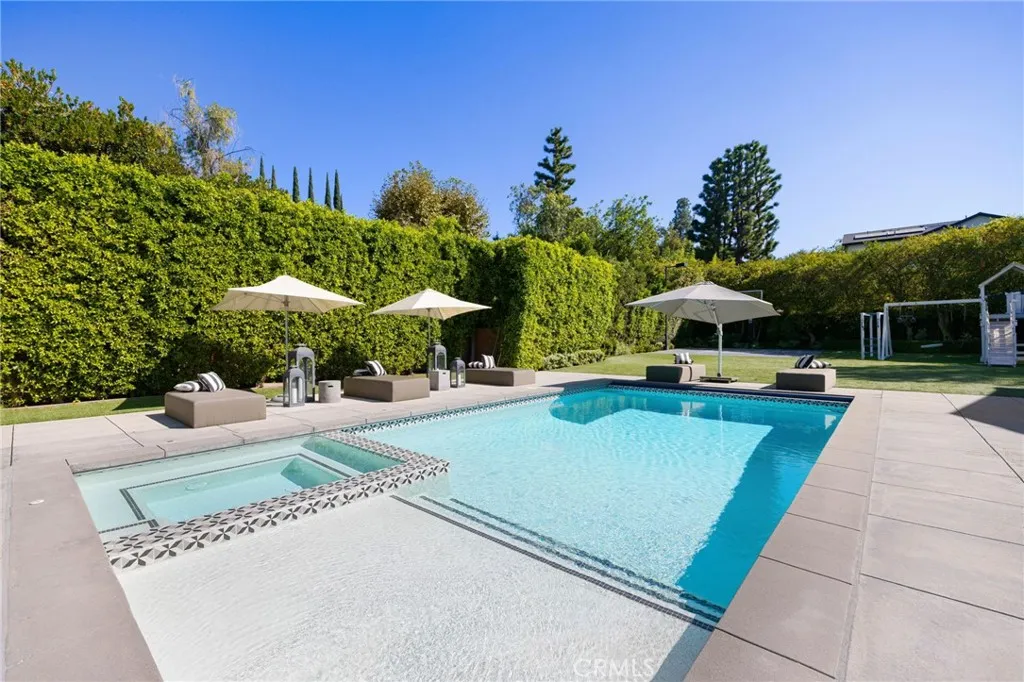 Gorgeous Cape Cod style custom masterpiece offers tranquil indoor/outdoor living in highly desirable and conveniently located Amestoy Estates. Over 6300+ square feet of indoor space with open flow and huge flat 21,000+ square foot entertainers paradise park-like lot with large yard, sparkling pool/spa, basketball court, BBQ island, outdoor fireplace and pool house/gazebo with bathroom. No expense or attention to detail spared in creating beauty and warmth throughout: Viking appliances, marble counters, large kitchen island, farm sink, temperature controlled wine cellar, premium French oak flooring, built-ins, French doors, and multiple fireplaces. All en-suite bedrooms upstairs and down. Multiple living areas and bonus rooms. Large primary bedroom suite with high ceilings, fireplace, two walk-in closets and two bathrooms featuring spa-like soaking tub and shower. Private home theatre with professional grade Dolby Atmos sound. Control 4 smart system. Multi-zone AC. Located on a private cul-de-sac, this grand and luxurious gated estate truly has all the privacy, space and quiet of a countryside estate with the convenience of an Encino location. Make an appointment to come see luxury, land and privacy.