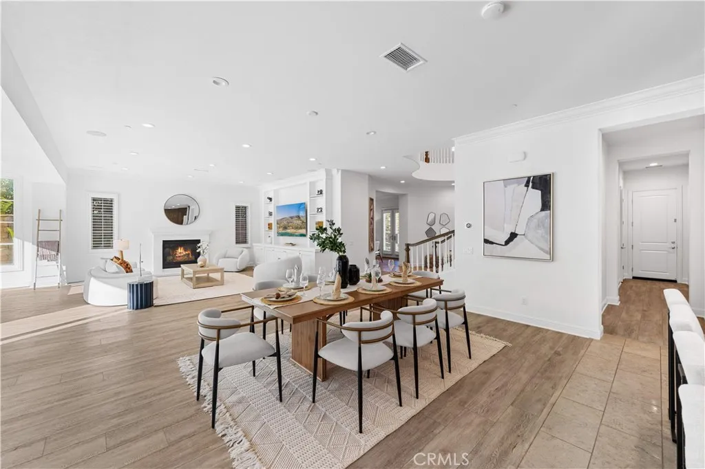 Sited in one of Irvines most prestigious communities, this beautifully designed home offers a seamless blend of luxury, functionality, and privacy. Set on a quiet street within the 24-hour guard-gated Groves of Orchard Hills, the property enjoys access to top-rated schools and exclusive resort-style amenities including a pool, clubhouse, tennis courts, scenic parks, hiking trails, and year-round community events. Upon entering, youre welcomed by an impressive grand foyer with soaring ceilings, a statement spiral staircase, and an elegant chandelier, all setting a refined yet modern tone. The expansive layout includes a large, light-filled loft with recessed lighting and windowsideal for a second living area or creative space. Designed with both everyday living and entertaining in mind, the home features a flex office space, two separate garages, and a chef-caliber kitchen complete with a walk-in pantry, prep kitchen, oversized island with breakfast bar, and premium stainless steel appliances. The primary suite boasts a luxuriously updated walk-in closet and a spa-inspired bath with a large all-glass steam shower, soaking tub, and expansive his-and-her vanities. Updated flooring and crisp white walls throughout the home enhance its brightness and clean elegance. The private backyard offers a peaceful retreat, while every detail in the home including added square footage and designer finishesreflects thoughtful upgrades and modern design. A rare opportunity to own a move-in ready, elevated home in one of Irvines most sought-after locationssurrounded by fine dining, serene lan