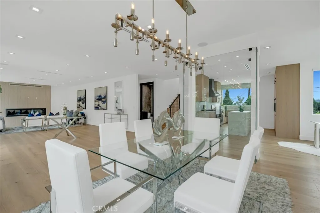 Downtown view. Location, Location, Location! Stunningly remodeled corner-lot home on Kenneth Road. The spacious living room, featuring a massive stone fireplace, seamlessly opens to the dining area, breakfast nook, and kitchenhighlighted by a beautiful enclosed glass wine display. This home boasts 4 bedrooms, each with its own private bathroom, plus a total of 5 bathrooms. The remodeled pool adds a luxurious touch. The lower-level family room opens directly to the pool area, making it an ideal space for a pool table, bar, and entertaining guests. No expense was spared in the upgrades: engineered hardwood floors, exquisite Italian tiles from Spain, custom European doors, designer kitchen cabinetry, Hansgrohe faucets, a new roof, all-new plumbing and electrical systems, new sewer lines, and three new HVAC units. Experience the perfect blend of elegance, comfort, and modern luxury in this exceptional home.