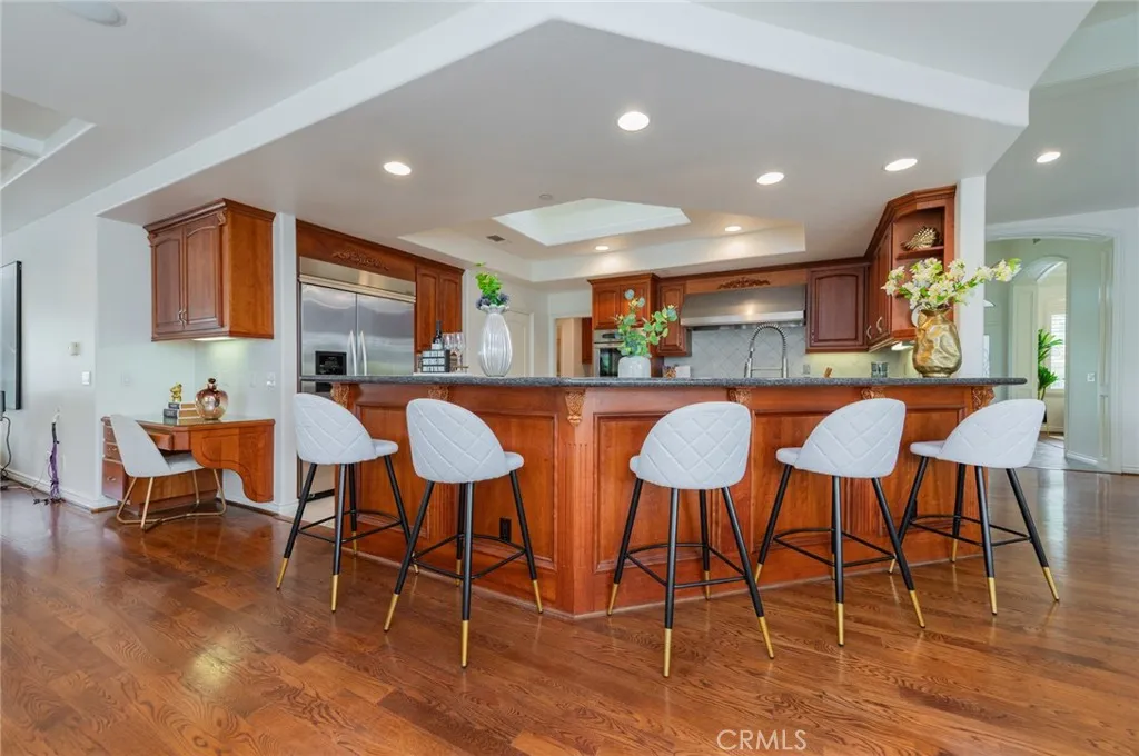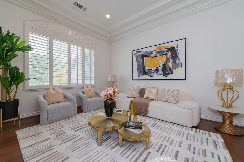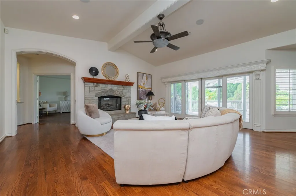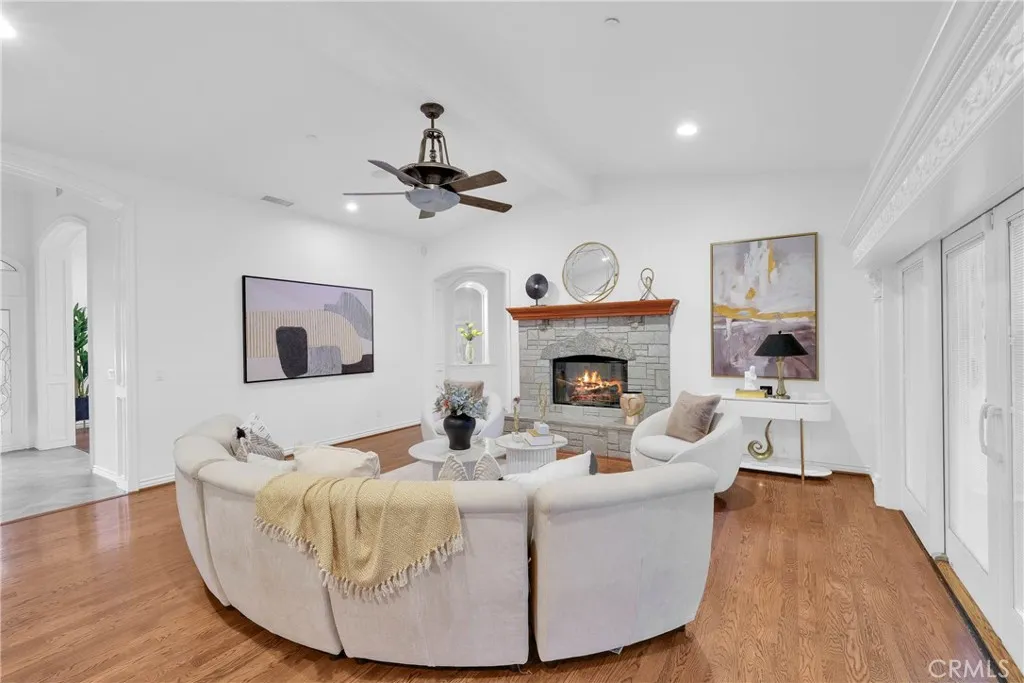 Nestled within the prestigious enclave of San Antonio Heights, this exquisite custom-built estate offers privacy and space on a sprawling lot of over half an acre. Meticulous craftsmanship and thoughtful design are evident throughout the home's expansive single-story layout, which is introduced by remarkable curb appeal and grounds designed for grand-scale entertaining. An atmosphere of refined elegance greets you, characterized by high ceilings, rich wood flooring, and elegant crown moulding. The heart of the home is a magnificent great room that seamlessly integrates a gourmet kitchen, a spacious dining area, and a welcoming family room with a fireplace. The kitchen is a chef's dream, appointed with top-of-the-line stainless steel appliances, a double oven, and a large center island. Adjacent to this living space is a versatile bonus game room, complete with a wet bar and beamed ceilings. The private accommodations are equally impressive, featuring a luxurious master suite that is a serene retreat. It boasts a jetted tub, a walk-in steam shower, and a substantial walk-in closet with custom cabinetry. Three additional generously sized bedrooms, one with a private exterior entrance perfect for a home gym or studio, and a handsome office with built-in cabinetry complete the thoughtful floor plan. The residence is also equipped with modern conveniences like a fully paid-off solar system, dual A/C units, and a central vacuum. For the automotive enthusiast, the property features an extraordinary six-car garage equipped with epoxy flooring. The expansive grounds provide abundant