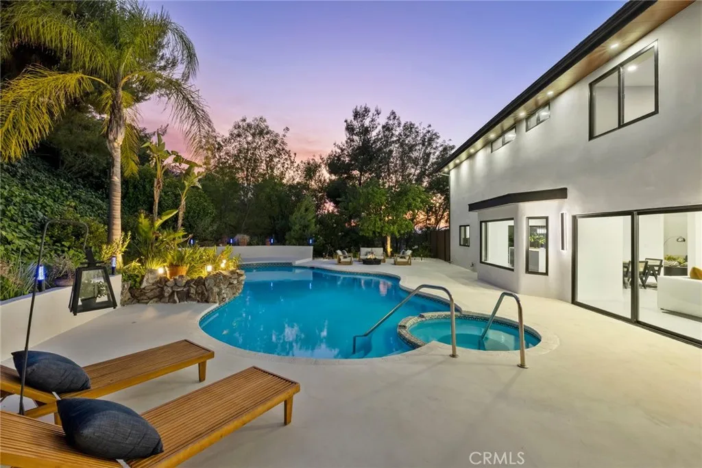 Welcome to 20101 Greenbriar Drive, an architectural masterpiece nestled in the serene hills of Tarzana. This newly remodeled 5-bedroom, 4-bathroom estate spans nearly 3,500 square feet of open-concept luxury, situated on a large 21,000+ sq ft lot with SWEEPING VALLEY VIEWS and incredible outdoor living. Step through the dramatic entrance into soaring ceilings, oversized windows, and designer tile floors that reflect natural light throughout the open-concept floorplan. A custom floating staircase, sleek lighting fixtures, and expansive living areas give the home an art-gallery feelequal parts inviting and impressive. Enjoy sweeping valley and mountain views from the living rooms oversized picture windows. The brand-new chefs kitchen flows effortlessly into the indoor-outdoor lounge area, anchored by a modern fireplace and floor-to-ceiling sliding doors that open to a private backyard oasis. Outside, indulge in your own resort-style retreat with a sparkling pool, lush landscaping, and a large patio perfect for entertaining or relaxing in the sun. Other highlights include a luxurious primary suite, spa-inspired bathrooms, a 3-car garage, and high-end finishes throughout. Located moments from Ventura Blvds best dining and shops, yet tucked away in a quiet cul-de-sac, this property offers the perfect blend of privacy, elegance, and everyday convenience.