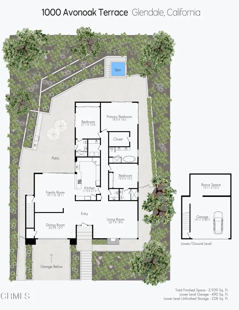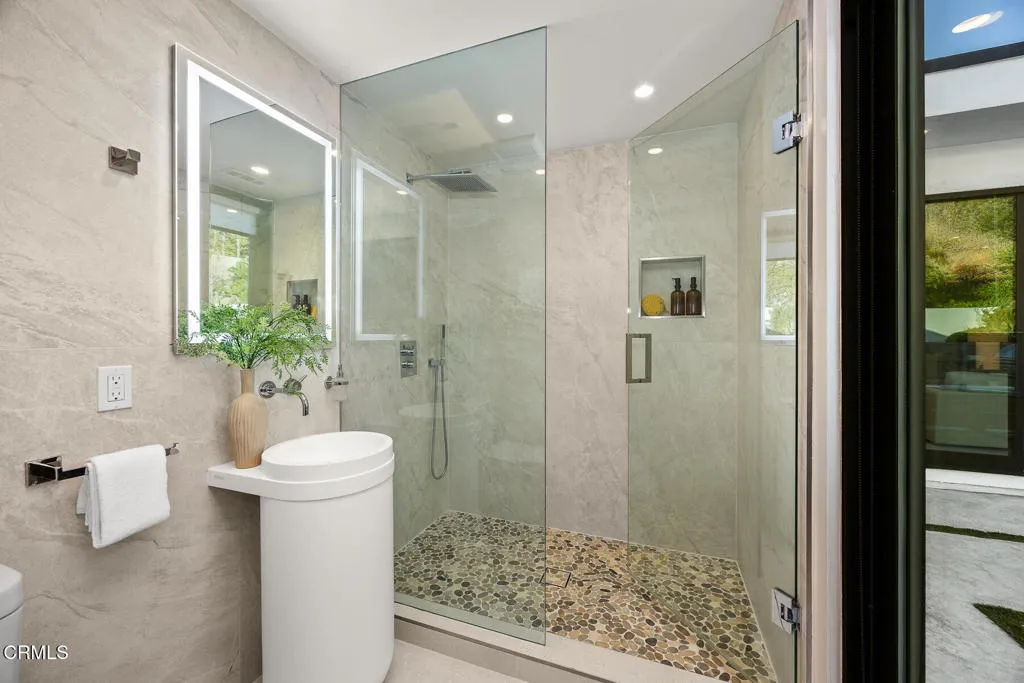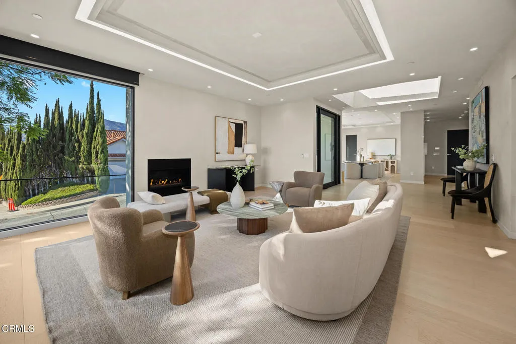 Introducing 1000 Avonoak Terrace, a Stunning Contemporary Villa with panoramic views stretching from the skyline of downtown Los Angeles to the mountains of Glendale. Perched on an elevated lot in the prestigious enclave of College Hills, this architectural gem was thoughtfully remodeled and expanded in 2022, blending modern sophistication with organic warmth & texture, showcasing a timeless design elevated by curated materials and high-end designer finishes throughout. Experience soaring 10-foot ceilings and floor to ceiling windows in the main living areas creating an atmosphere bathed in soft natural light. The 9-foot custom steel and glass front door makes a dramatic first impression entrance. A skylight illuminates a grand front entry leading to the spacious living room w/ fireplace & sweeping views, flowing seamlessly into a formal dining area and an open concept family room which interacts with the kitchen and has views to the living room. The kitchen is anchored by Thermador and Miele appliance suites, designed to elevate the culinary experience, including a wine cooler, coffee/espresso system, Perlick dual-drawer refrigerator, heated water dispenser, and seamless European cabinetry, accented by waterfall stone countertops, and a sit-up island complete the space. Featuring three luxurious ensuite bedrooms and four bathrooms - the primary suite, framed by stunning views, offers a serene spa-inspired bathroom, his/her custom walk-in closet, and a private balcony. Two secondary ensuite bedrooms w/beautifully designed 3/4 baths, custom closets, w/ views and access to ou