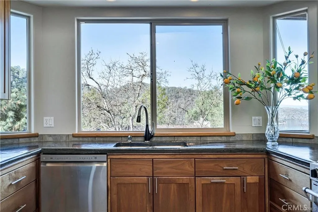 Experience Lakeside Luxury with Breathtaking Views! Step into the serenity and elegance of this expansive residence in the desirable Kelseyville area, boasting sweeping vistas of Clear Lake and majestic Mt. Konocti. This home is thoughtfully designed to accommodate various living arrangements, making it perfect for a range of lifestyles. The upper level showcases a sunlit and airy floor plan, featuring a cozy living space with a charming fireplace, a formal dining area, and a well-appointed kitchen that is ideal for both daily living and entertaining. Two spacious bedrooms, including a master suite with access to a sizable deck, a walk-in closet, and a luxurious ensuite bathroom with a walk-in shower and a separate soaking tub, complete the upper level. The lower level, with its own private entrance, offers a third bedroom, a home theater, and a wet bar, presenting an excellent opportunity for a guest suite, an artistic retreat, or a recreational haven. Outside, the property is a haven of tranquility, boasting a serene koi pond with a cascading waterfall, flourishing grapevines, and multiple relaxation areas. The expansive driveway and additional parking spaces provide ample room for vehicles, watercraft, or outdoor gear. Just a short distance from a public boat launch and marina, this home offers easy access to a plethora of water activities, including boating, kayaking, and fishing on Clear Lake. Nestled at the foothills of Mt. Konocti and surrounded by vineyards, local markets, and dining establishments, this residence strikes a perfect balance between natural splendor a