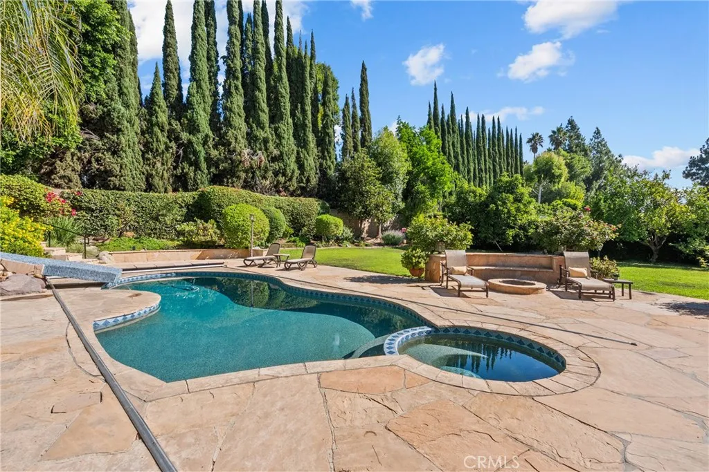 Welcome to Devonshire Highlands  Where Grand Living Meets Timeless Pride of Ownership! Sprawling Country Court Home with true circle driveway! Tucked away on a quiet cul-de-sac, this impressive nearly 4,300 sq ft estate offers 5 spacious bedrooms, 4 bathrooms, and a layout designed for both luxury and comfort. Step inside to soaring ceilings and an expansive open floor plan that sets the perfect stage for elegant entertaining or relaxed family living. Rich hardwood floors flow throughout the main areas, leading to a formal dining room that comfortably seats up to 20 guests, with beautiful views of the sparkling pool and spa just beyond truly a resort style backyard. The updated enormous chefs kitchen features granite countertops, a large center island with seating, built-in refrigerator and separate freezer, charming bay window, and French doors that invite the outdoors in. Adjacent is a warm and inviting family room complete with a cozy wet bar and additional French doors opening to your resort-style backyard. Downstairs, youll find a highly desired guest bedroom with a full bath, ideal for visitors, in-laws, or a private office setup. Upstairs, the home continues to impress with three additional bedrooms, plus a versatile office space attached to the primary suite  perfect for working from home or a peaceful retreat. The primary bedroom boasts a walk-in closet and serene views of the lush backyard. Outside, this entertainers dream continues with a fully-equipped outdoor kitchen and BBQ, a sizeable covered patio, and plenty of room to gather. Enjoy the saltwater pool with