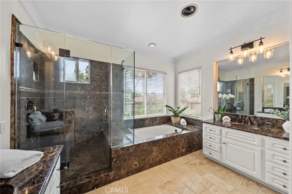 Welcome to 48 Parkcrest, a beautifully updated five-bedroom residence tucked inside the highly coveted, guard-gated Bainbridge community of Northwood in Irvine. With only 91 homes and low turnover, Bainbridge offers an intimate neighborhood setting that perfectly balances privacy, charm, and convenience. From the moment you arrive, the curb appeal is undeniablemanicured landscaping, mature trees, and a welcoming front porch set the stage for whats inside. Step through the front door and discover a bright, thoughtfully designed floor plan where classic architectural details blend seamlessly with modern upgrades. The formal living and dining rooms create an elegant space for entertaining, with large windows and French doors filling the home with natural light. At the heart of the home is a remodeled kitchen featuring rich cherry cabinetry, granite countertops, high-end stainless steel appliances, and a charming garden window overlooking the lush backyard. The adjacent family room, offers a brick fireplace and impressive built ins, and flows directly outdoorsan ideal setup for Southern Californias indoor-outdoor lifestyle. Upstairs, the oversized primary suite offers a peaceful retreat with dual vanities, a spacious walk-in closet, and a separate tub and shower. Four additional bedrooms complete the second level, including one with its own ensuite bath, making the home ideal for guests or multi-generational living. Step outside to your private backyard oasis, designed for year-round enjoyment with a sparkling spa, built-in BBQ, multiple seating areas, and mature landscapingper
