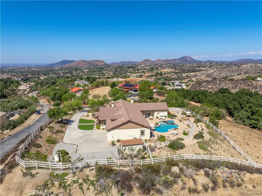 Welcome to your private Wine Country retreat! Nestled on nearly 5 acres of usable land, this single-story estate captures unparalleled 360-degree views of Temeculas rolling vineyards and stunning sunsets. Designed for both comfort and entertaining, this residence offers 4 bedrooms, 4.5 bathrooms, plus a dedicated office and private automatic gated entrancethe perfect blend of elegance and functionality. This property is eligible to obtain an Short Term Rental Certificate with Riverside County, as of current ordinance rule and newest ordinance rule revision. Inside, youll find a thoughtful floor plan that balances style and space. The home features a formal living and dining room with a cozy fireplace, perfect for intimate gatherings or holiday celebrations. The expansive great room seamlessly opens to the chefs kitchen, creating the ultimate space for entertaining. The kitchen boasts stainless steel appliances, granite countertops, and ample cabinetrya dream for any culinary enthusiast. Additional upgrades include surround sound speakers throughout the house and backyard, a whole-house fan, and a water softener, enhancing comfort and convenience. The primary & one additional secondary bedroom has its own full ensuite bathroom, bedrooms three & four both have a shared ensuite bathroom ensuring privacy for family and guests, while the office provides a quiet, versatile space for remote work or creative pursuits. There is also a fourth full bathroom in the hallway as well as additional half bath by the Great Room. Step outside to embrace the true California lifestyle. Enjoy th