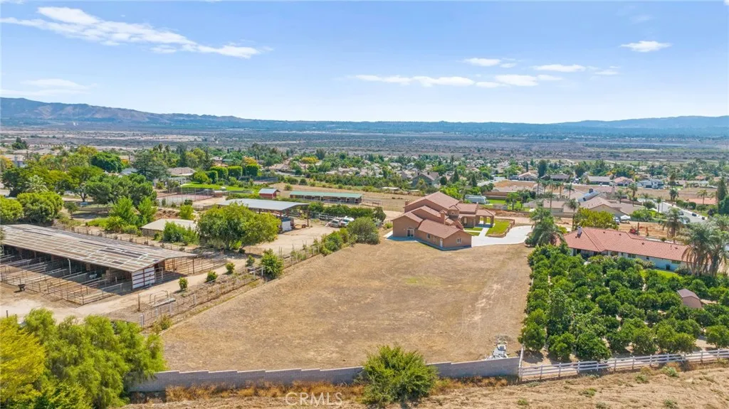 Custom built estate at the top of the cul de sac situated among other custom homes surrounded by city views and mountain. Come through the long driveway that leads to a Spanish/Mediterranean boasting 5,675 sq.feet property and 3 car garage is over 1,300 sq.feet and RV parking available.Enter the home to a grand entrance leading to a large living room with dramatic fireplace, all in an open floor plan with abundance of natural light. This estate has a large kitchen with a huge island, self closing cabinets, ample storage that opens to the dining and living room. There are 2 primary suites located one upstairs and one downstairs along with 3 more bedrooms and bonus rooms. There are 2 brand new AC, 2 brand new tankless water heater and certification for septic recently completed.This home rests on 1.69 acres. There is plenty of potential with entertaining guests outside or used for equestrian and zoned for a second unit. Its close to schools, shopping, and hospital. Located in close proximity to I-210 and I-10 freeway.