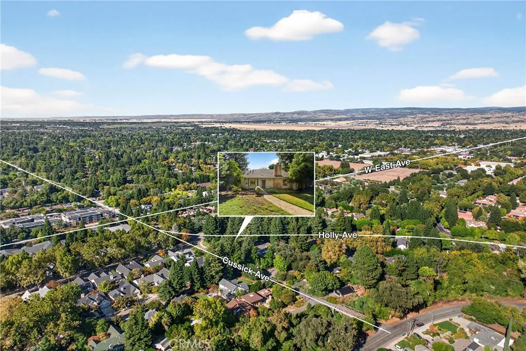 Welcome to 2413 Holly Avenue, a stylish home nestled in a desirable neighborhood in North Chico. Recently reduced and now offering a potential 1-year interest rate buy down. This 3-bedroom, 3-bathroom 1764 sq.ft. home blends distinctive charm with thoughtfully designed living spaces, and a floor plan to meet all of your needs. Surrounded by mature redwoods and beautifully landscaped grounds, this home offers a peaceful retreat that feels secluded, yet remains central to all of Chico's amenities. The main level includes a bright and open living room with soaring, exposed wood beam ceilings, a stunning fireplace, tile flooring and a formal dining area separated by a tasteful glass-block wall, providing the perfect space for entertaining or enjoying quiet evenings at home. The kitchen offers chic tile flooring, granite countertops, a garden box window and ample cabinet space including a built-in wine rack. The private ground level primary suite offers two walk-in closets, an updated ensuite bathroom with separate sinks and vanity areas, updated granite countertops and a walk-in shower. The main level also includes a second bathroom and bedroom including built-ins and a slider with access to the patio with a brand new deck. Upstairs is a bright open loft space that can be used as an office or additional living space. Adjacent to the loft is a generously sized guest bedroom and full bathroom, offering a floor-plan for everyone to have their own space. Additional features include an attached two car garage, use of common areas in a planned development that pays for water, trash a