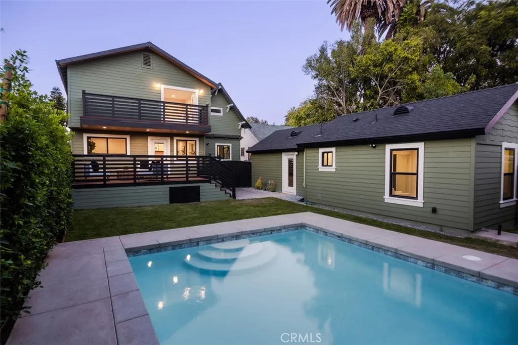 In the heart of storied Angelino Heights, this meticulously restored Craftsman originally built in 1907 and fully reimagined by DesignBuildLA, seamlessly blends timeless character with modern sophistication. Every detail has been thoughtfully considered to honor its historic soul while introducing contemporary comforts, with all-new systems, designer finishes, and architectural updates that celebrate both heritage and luxury. Spanning over 3,500 square feet, the main residence offers 4 bedrooms and 4 bathrooms, with an office and interiors flooded in natural light from original period windows. Soaring ceilings, a wood-burning fireplace, and expansive living and dining areas create a backdrop equally suited for intimate evenings or grand entertaining. Flexible spaces abound, from a dedicated office and cozy reading nook to a family room with a custom bar that flows effortlessly to the backyard and deck.The chef's kitchen is a true centerpiece, appointed with striking Viola marble, custom oak cabinetry, handmade tilework, stone-edged details, built-in appliances, and a spacious walk-in pantry. Upstairs, the primary suite is a serene retreat with sweeping views of Downtown Los Angeles, a private balcony, a custom walk-in closet, and a spa-like bath featuring dual vanities, handmade zellige tile, a freestanding soaking tub, and a separate shower. Outdoors, the home unfolds into a private oasis with a brand-new pool, landscaped grounds, and an expansive deck framed by lush greenery. A detached two-bedroom, one-bath ADU with a full kitchen offers endless flexibility perfect for g