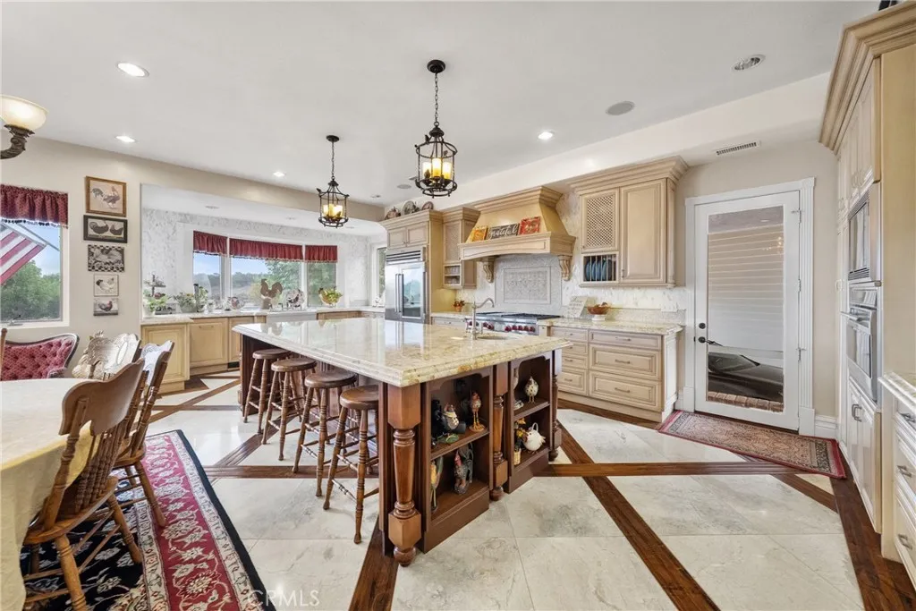Dream Ranch Retreat with Endless Possibilities in Tenaja. Welcome to a place where craftsmanship, comfort, and wide-open space come together. Behind a private gated entry, this custom farm-style ranch in the heart of Tenaja blends rustic charm with refined design. Inside, youll find hand-scraped walnut floors with blue ocean marble inlays, 40-foot open-beam wood ceilings, and expansive windows that fill the home with natural light and capture views of the surrounding countryside. At the heart of the home, the chefs kitchen is both beautiful and functional, featuring a Wolf range, Sub-Zero refrigerator, Gaggenau pizza oven, and an oversized island that makes gathering effortless. The great room centers around a stone fireplace and flows seamlessly into the main living spaces. With four bedrooms and four-and-a-half baths, the main residence offers comfortable luxury, including a primary suite with its own fireplace, dual vanities, and jetted soaking tub. A sweeping staircase leads to an expansive loft and game room with exposed beams and a cozy fireplace perfect for entertaining or unwinding. Outdoors, this 8-acre ranch property truly shines. A private well provides self-sufficiency, while the barn, round pen, and fenced pasture make it ideal for horses, animals, or hobby farming. The sparkling pool, built-in barbecue, and spacious brick-lined patio create an inviting space for gatherings or quiet evenings under the stars. Completing the property is a four-car garage with a 600-square-foot ADU abovecomplete with bedroom, bath, living area, and kitchenette offering flexibility