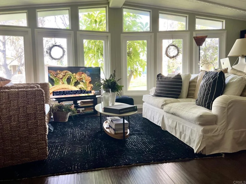 Fabulous lakefront and fountain views through multiple living room windows in this beautifully maintained home in Lakeshore Gardens. The living room also boasts soaring cathedral ceilings and built-in bookshelves as well as an extended space to use as a formal dining room, secondary family room, or office. It's up to you! Engineered hardwood floors throughout emphasize the openness and flow of the home. In the kitchen, you'll enjoy solid wood cabinetry and granite counters plus an extra large island that provides convenient dining space. Stainless steel appliances all convey including wine cooler and washer / dryer. The two bedrooms are generously sized and provide ample closet space. The primary bathroom has double sinks and walk-in shower. Outdoors, the teak table and chairs on the patio off another comfortable spot to enjoy lake and fountain views. Mature plants have been well tended to match the lush landscaping and greenbelt of this 54-acre park-like setting. There is a spacious storage shed with shelves plus parking for 2 cars. Location, location, location!!! Lakeshore Gardens is just 1/4 mile from Carlsbad State Beach. There is a shopping center (grocery store, hair salon, UPS, restaurants, banks, and more) steps away from the front entrance. Lakeshore Gardens is an active 55+ community with many amenities including a heated pool and spa. The clubhouse offers a library, card room, billiard room, gym and more. Activities abound for a wide variety of interests from cards and crafts to water aerobics and zumba. Choose your favorites and enjoy!