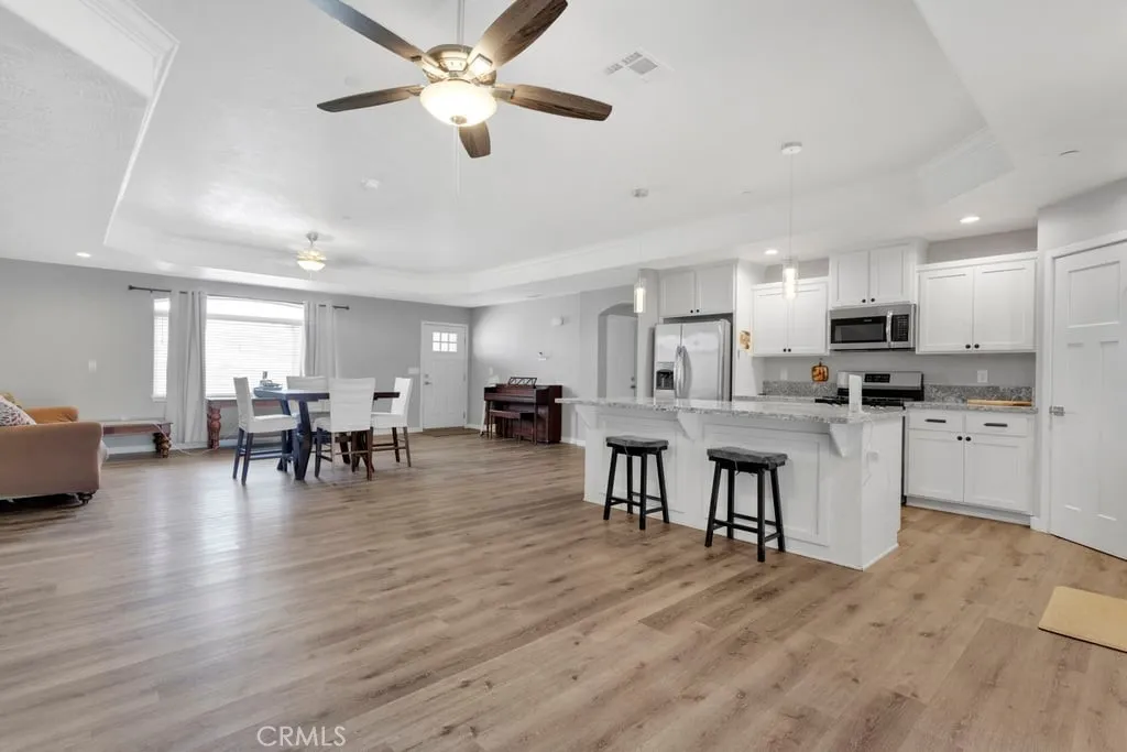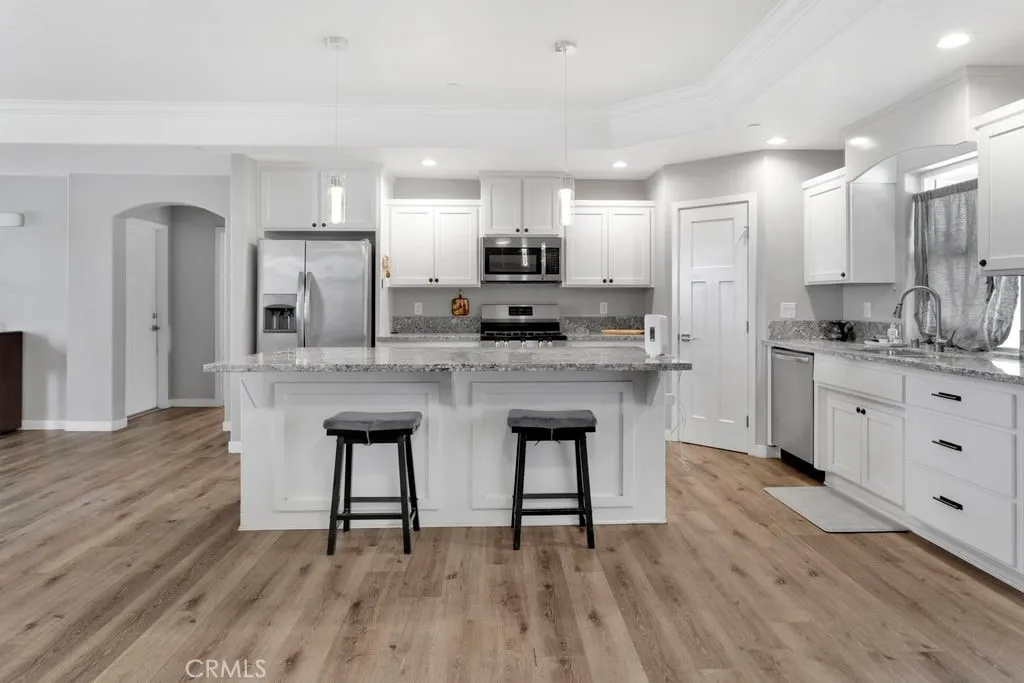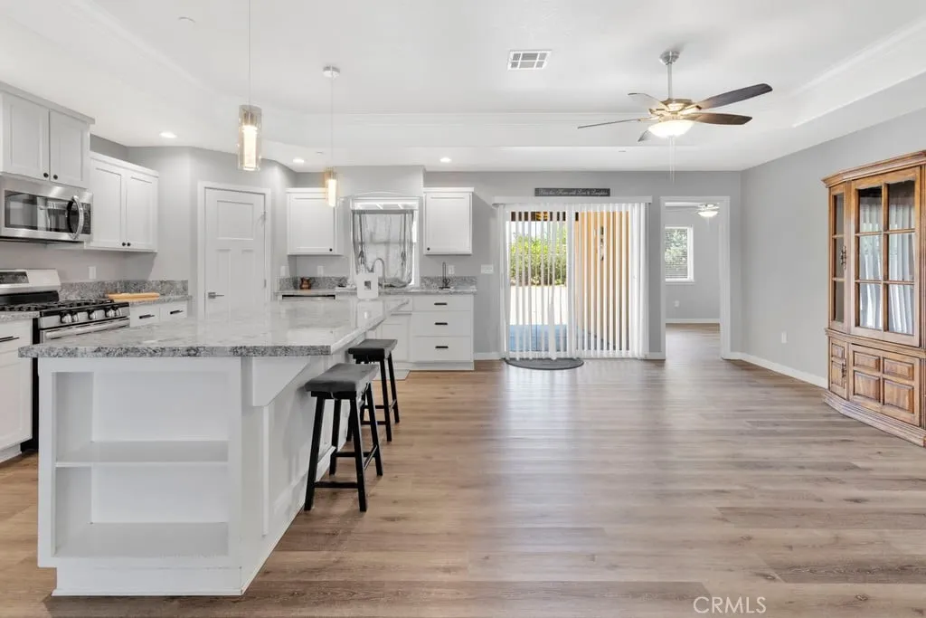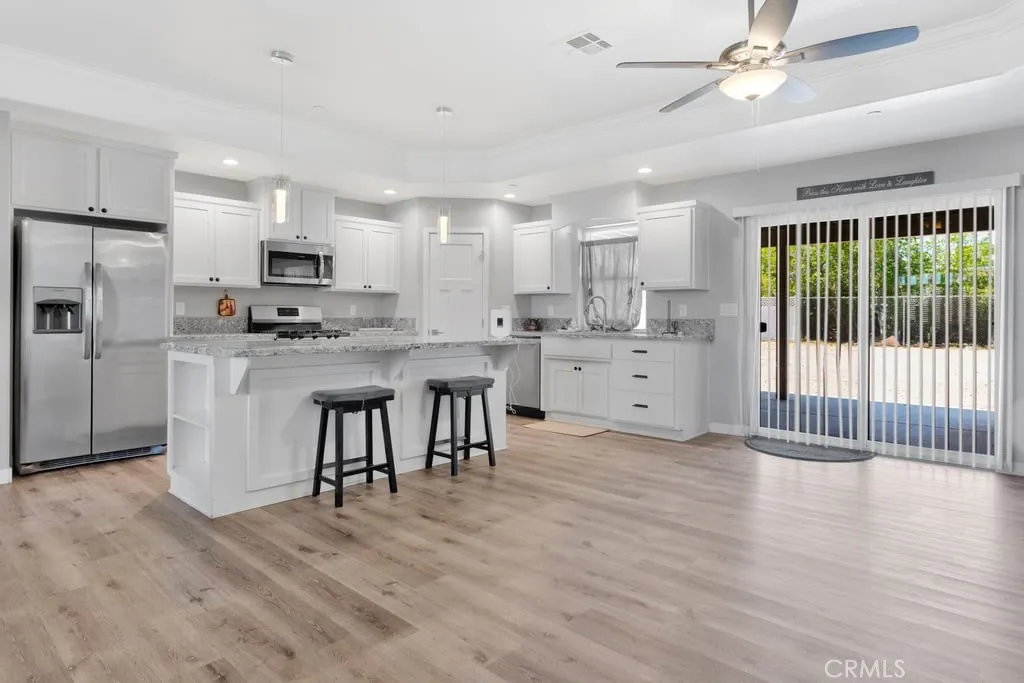 Welcome to this beautifully maintained 4-bedroom, 2.5-bath single-story home located in the heart of Hesperia. Built in 2020 and offering 2,027 sq. ft. of living space on a generous 16,524 sq. ft. lot, this property combines modern comfort with thoughtful design. The open floor plan features crown molding, recessed lighting, and laminate flooring throughout. The upgraded kitchen is a chefs delight with granite countertops, self-closing cabinets and drawers, a freestanding island, walk-in pantry, and stainless-steel appliances including a built-in oven, microwave, and dishwasher. Each bedroom offers ceiling fans and ample natural light, while the master suite includes a spacious walk-in closet. Enjoy energy-efficient features like a tankless natural gas water heater, data wiring, and a fire/smoke detection system with an automatic sprinkler system. Step outside to a covered patio with a natural gas outlet for your BBQ, perfect for entertaining. The property includes a three-car garage, potential RV parking, chain-link fencing, and a durable stone roofideal for those who appreciate both space and quality. Welcome Home!