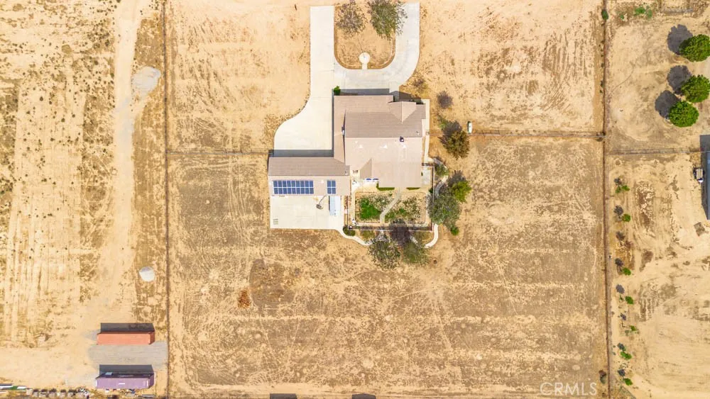 Gorgeous, single-story ranch home. This sprawling property is 2.51 acres with curb-appeal PLUS! Circular driveway wraps around from a lighted porch in the front to a covered parkway on the side. The elegant and decorative, solid wood entryway opens to a concept floor plan complete with picture windows to enjoy the natural, tranquil atmosphere. There are 4 bedrooms, 2 have adjoining, private, full baths with showers, a third has a full bath with a relaxing soaking tub. The living room has a charming fireplace for romantic evenings at the ranch. Cooks dream of a kitchen like this with plenty of cabinet space. Center island has a full-oven with cooktop, downdraft, and griddle. This allows the chef to cook within sight of guests, perfect for entertaining. Custom kitchen has a built-in microwave and a second convection oven for those huge holiday meals. There is a large pantry with glass pocket door and another one on entry. There are two water heaters for generous hot water throughout the home. Windows pull out for easy cleaning ,fully paid solar. Spacious 3 car garage with carport and extra workshop in the main garage. Peaceful backyard with lighted covered patio for outdoor dining and relaxation. Landscaped grassy area with storybook charm.