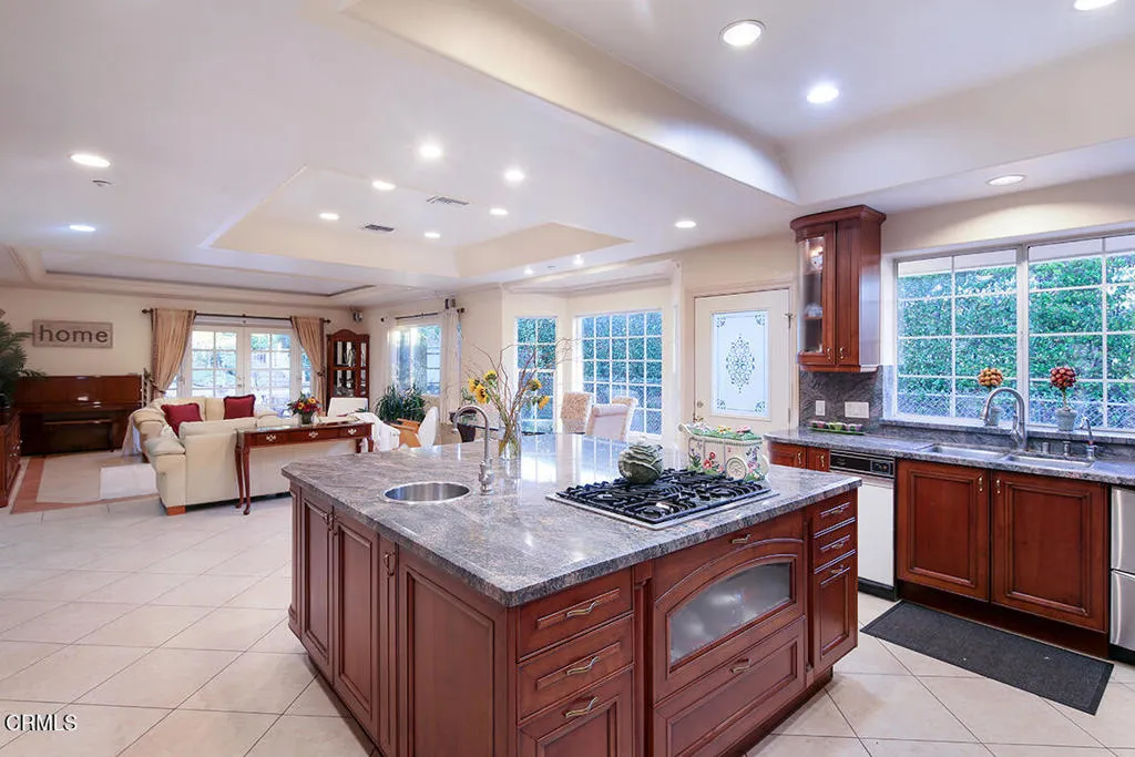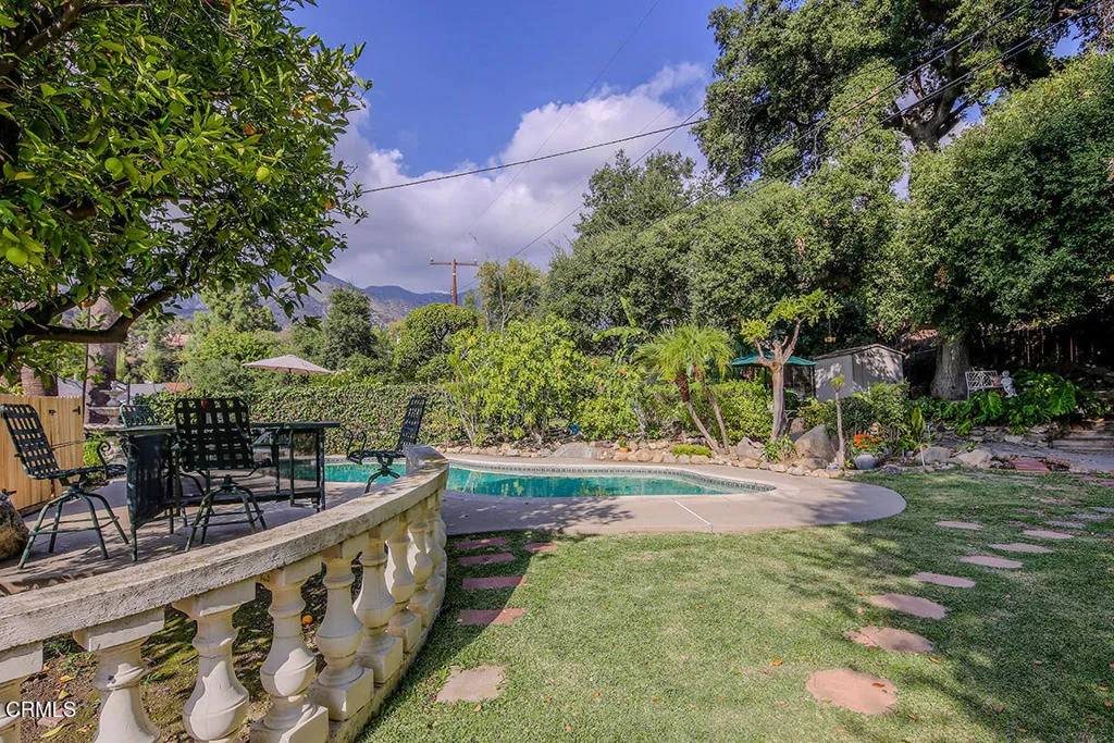 Stunning Mediterranean Retreat in Prime North Monrovia. Step into timeless elegance with this beautifully crafted 4 bedroom, 3 bath Mediterranean-style home with high ceilings, ideally located in the highly sought-after neighborhood of North Monrovia. Designed for both comfort and sophistication, this residence offers a seamless blend of classic charm and modern amenities.Enjoy an inviting living room with a cozy fireplace, recessed lighting, and rich hardwood floors. Host unforgettable gatherings in the formal dining room adorned with striking marble flooring. The expansive, gourmet kitchen is a chef's dream, featuring custom-built cabinetry, built-in appliances, granite countertops, a spacious center island and a secondary kitchen.Unwind in the luxurious primary suite, bathed in natural light from skylights, and indulge in the spa-inspired en-suite bath complete with a jetted tub, separate walk-in shower, dual vanities, and elegant marble flooring.The second bedroom has a skylight with sliding doors that access the side patio with an seating area.Additional highlights include a fire sprinkler system throughout the house and the garage, a surround sound system, 2 central air & heat units, a 2-car attached garage with a large retractable awning, a covered and heated patio perfect for year-round entertaining, and a tranquil backyard oasis with a sparkling pool, multiple sitting areas, a mature oak tree and fruit trees.As a bonus, this property has a unpermitted ADU studio. The 4th bedroom has been converted into an office.House was completely remodeled and addition was done
