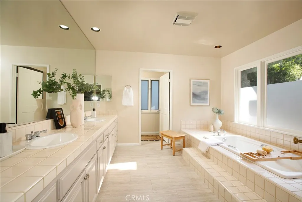 Santa Barbara is a unique avenue of annual block parties and kids actually playing on their front lawns in the shade of mature trees. These Owners have loved living here for over 40 years. In that time that have preserved the original character while transforming it to this elegant one-story estate of almost 3,000 sf. The formal entry opens to a beautiful formal living room with rich wood flooring, original double hung windows, and a warm fireplace. The dining room seats a rather large party for formal entertaining. The kitchen has been tastefully remodeled and expanded with more wood flooring, custom cabinetry, dark quarts counters, high end appliances and a large breakfast room. Of course, this culinary hub of the house opens to the family room with its own fireplace, custom built-ins, and glass doors that open to the rear grounds. The primary suite is its own wing with a huge bedroom with an antique marble fireplace mantel, a true walk-in closet, and a glorious bath with dual sinks, separate stall shower, and a soaking tub. The west wing has two more large bedrooms, two gorgeous remodeled baths, and perhaps the best home office I have ever seen with a high ceiling, custom cabinets, and a wall of glass that opens out to the private paradise yard with a spectacular pool and spa. This room was also designed to be a fourth bedroom with its own ingress. This is a rare home that offers more features than I can list, but just a few include a newer roof with solar panels, updated copper plumbing, updated electrical panel, central air and heating, and a two-car attached garage.