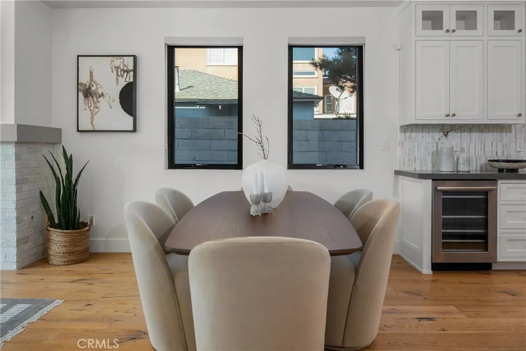 Experience elevated coastal living in this newly built modern farmhouse, ideally situated less than one mile from Pacific Coast Highway in the heart of Huntington Beach. Designed to capture the essence of refined seaside living, this residence combines timeless craftsmanship with contemporary elegance just moments from Main Streets acclaimed dining, boutique shopping, and vibrant entertainment as well as walking distance to the beautiful outdoor shopping venue, Pacific City. The inviting 800 sq.ft. front patio sets a distinguished first impression, offering an idyllic setting for open-air gatherings with a built-in fire pit, barbecue, artificial turf, and thoughtfully illuminated landscaping. Inside, expansive bi-fold doors open to create a seamless indoor-outdoor flow, uniting sophisticated design with relaxed coastal ambiance. At the heart of the home, the chefs kitchen features stunning white quartz countertops, a marble backsplash, a walk-in pantry, and a grand center island. Professional-grade appliances include a six-burner double oven range, complemented by Restoration Hardware lighting and custom cabinetry that exude luxury and functionality. Distinctive touches throughout the home include an 80-bottle glass wine room, a versatile den with a Murphy bed, and multiple en-suite bedrooms that provide comfort and privacy for family and guests. The primary suite is a true retreat, offering a private fireplace and a spa-inspired bath designed for indulgence and tranquility. The third-floor bonus room enhances the homes entertainment appeal with a wet bar and private terrac