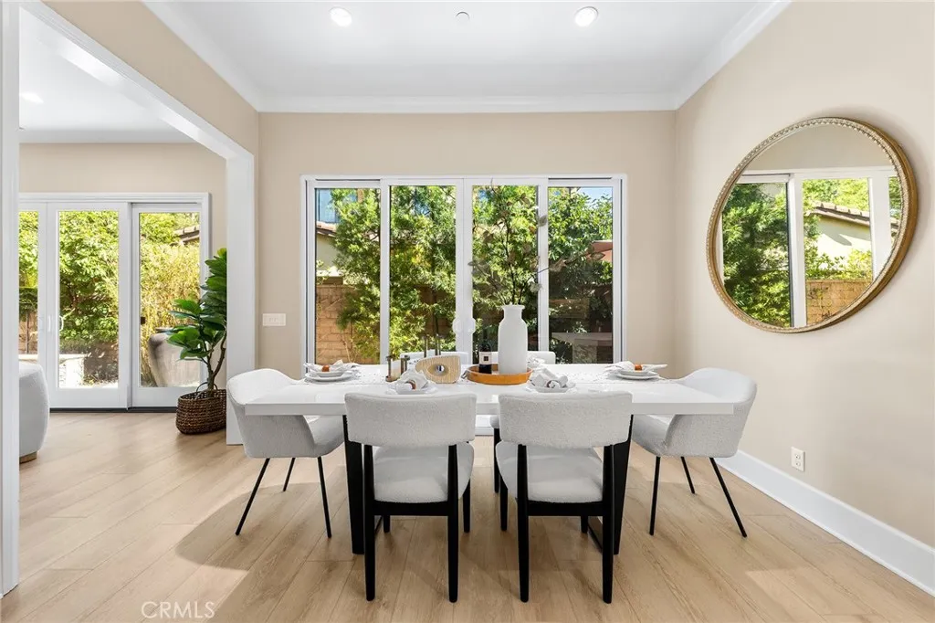 Welcome to 51 Thoroughbred, a stunning newer-construction end-unit home located on a private cul-de-sac in the desirable Strada community of Orchard Hills. This residence boasts soaring cathedral ceilings and an open floor plan, creating a bright and inviting living space. Expansive glass doors and windows open to a beautifully landscaped backyard featuring travertine flooring, a water feature, and a built-in BBQ island with seatingperfect for outdoor entertaining. The interior has been upgraded with brand-new flooring throughout, complementing the gourmet kitchen with custom tile backsplash, a large center island with seating, KitchenAid appliances, ceiling-height cabinetry, and a walk-in pantry. A convenient downstairs bedroom and full bath are ideal for guests or multi-generational living. Upstairs, a versatile loft offers space for a playroom, office, or media room. The serene primary suite includes a customized walk-in closet and spa-inspired bath with dual vanities, a soaking tub, and a separate shower. Two additional bedrooms, a full bath with double sinks, and a spacious laundry room complete the upper level. Additional highlights include a reverse-osmosis water filtration system, whole-house water softener, plantation shutters, automatic outdoor lighting and irrigation, and a garage with epoxy flooring and extensive built-in cabinetry. Residents of Orchard Hills enjoy resort-style amenities including pools, spas, BBQ areas, basketball courts, and playgrounds. Conveniently located near major freeways, toll roads, premier shopping and dining, and within the award-win