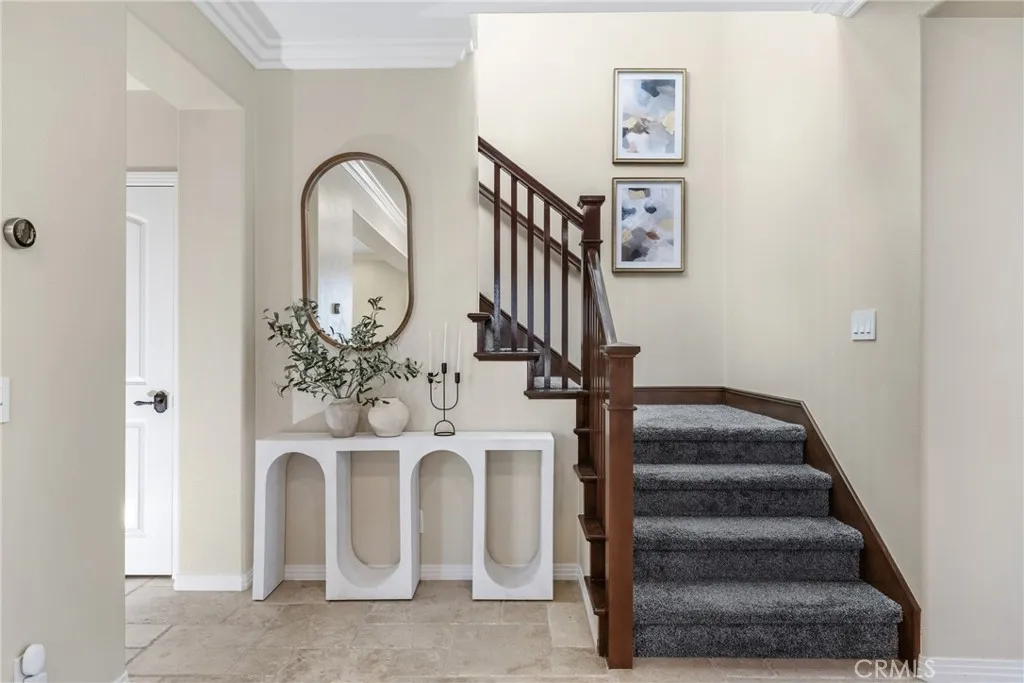 Welcome to this beautifully upgraded residence located at 35 Twin Gables in the highly desirable Woodbury, Irvine community. This sophisticated home offers 4 spacious bedrooms and 3.5 with 2,429 sq ft of living space built in 2006. The home has an exceptionally open and light-filled floor plan. At entry youre greeted with travertine flooring on the first level, seamlessly flowing into formal living and dining areas. Gourmet kitchen is equipped with high-end appliances including a double oven, gas cooktop, wine cooler, and ample counter & cabinet. A private bedroom downstairs with its own bath offers flexibility for guests, in-laws, or a home office. Luxurious primary suite upstairs features a soaking tub, walk-in shower, dual sinks and a spacious walk-in closet. Crown molding, recessed lighting and integrated surround-sound enhance the living experience. Outdoor & backyard living is amazing at this home. Step through double French doors from the dining room to an entertainers backyard oasis with built-in firepit, bar-island, custom pavers and a decorative water feature. Solar panels, water softening system, and an EV-charging port in the attached 2-car garage enhance both comfort and efficiency. As a resident of Woodbury, enjoy access to multiple resort-style pools and spas, sports courts, BBQ areas, and trails including the nearby Jeffrey Open Space Trail and top-rated schools such as Woodbury Elementary School, Jeffrey Trail Middle School and Portola High School.