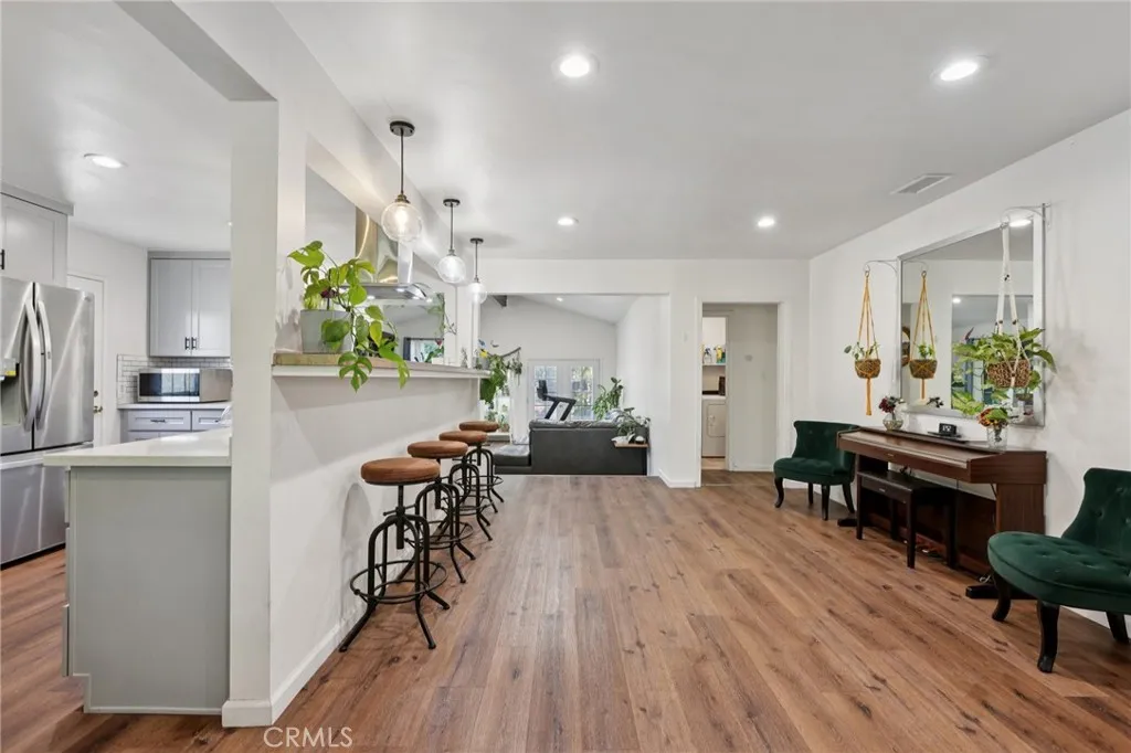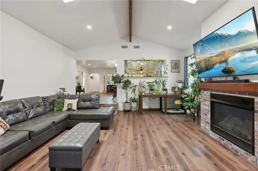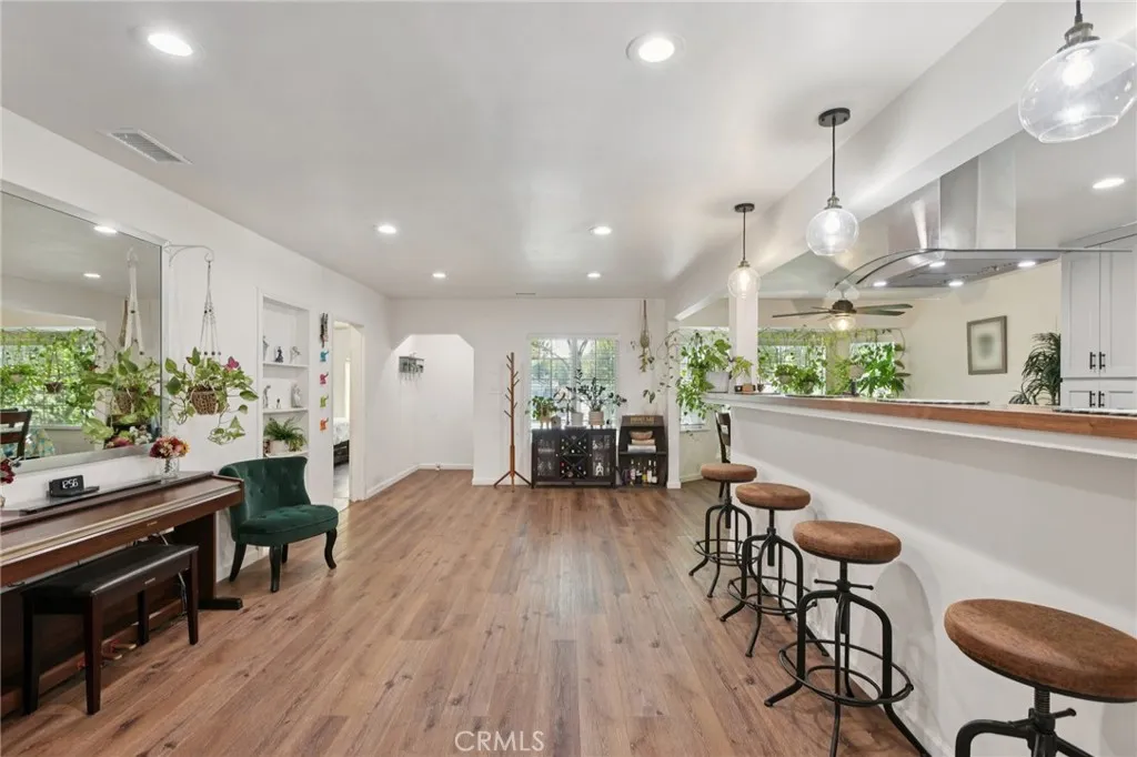 Welcome to this beautifully updated 3-bedroom, 2-bath home offering comfort, functionality, and thoughtful upgrades throughout. Originally 1,393 sq. ft., the home has been expanded to include an additional approx. 400 sq. ft. lower-level living room/den featuring a gas fireplace and double-pane windows, all completed with city permits and up to code. Recent upgrades completed within the last five years include: Full kitchen remodel with new cabinets, fixtures, double pane windows and flooring that extends through the common areas Recessed lighting throughout the main living spaces Updated bathrooms and laminate flooring in all bedrooms New central HVAC system with new ductwork (approx. 2 years old) New water heater (approx. 2 years old) Partial roof replacement (2/3 replaced during expansion project) New backyard cement slab and two underground storm drains for improved drainage Enjoy the spacious backyard filled with established fruit trees, including avocado, orange, lime, fig, dragon fruit, and cactus. Additional highlights include an insulated garage door. Garage used as a playroom. This move-in ready home offers a rare combination of modern upgrades, expanded living space, and a peaceful outdoor setting in one of Downeys most convenient neighborhoods.