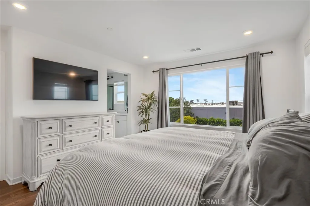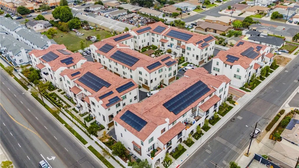 Built in 2023, this stunning end-unit tri-level townhome in one of Gardenas most desirable gated communities offers 2 bedrooms, 2.5 baths, and 1,283 sq ft of modern comfort and style. The second level features an open-concept layout with a spacious living room, dining area, and chefs kitchen showcasing a large island, stone countertops, stainless steel appliances, a walk-in pantry, and a half bath. Upstairs are two en-suite bedrooms, both with walk-in closets and the convenience of an in-unit laundry area on the same floor, eliminating trips downstairs. The side-by-side attached garage is a rare find, offering easy access and extra storage compared to single-tandem layouts. Additional highlights include upgraded luxury vinyl flooring, recessed lighting, dual-pane windows, central A/C, and leased solar panels for energy efficiency. Enjoy community amenities such as a BBQ/picnic area, secured package station, and ample guest parking. FHA & VA approved, experience modern South Bay living at its finest!