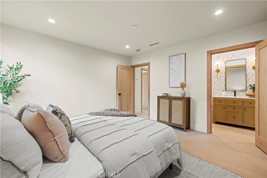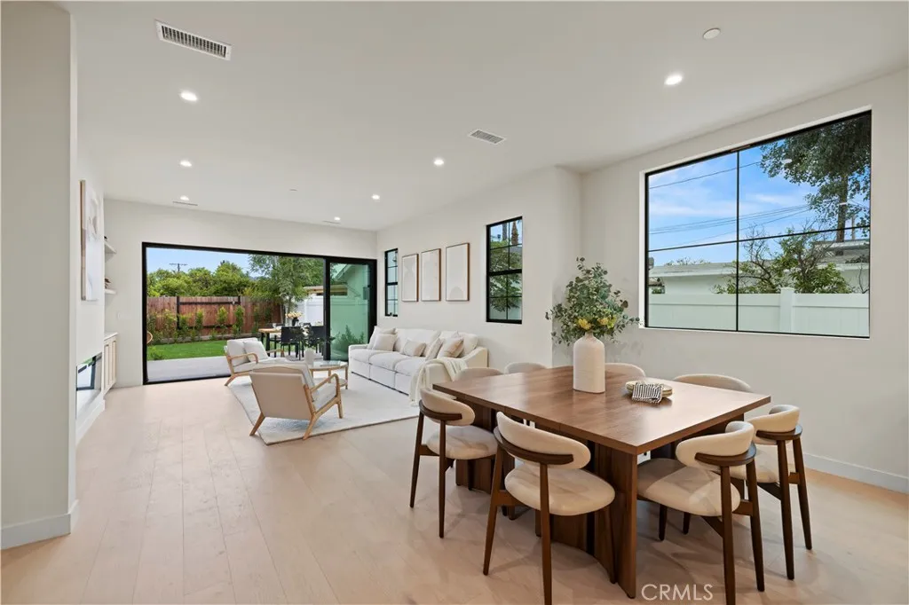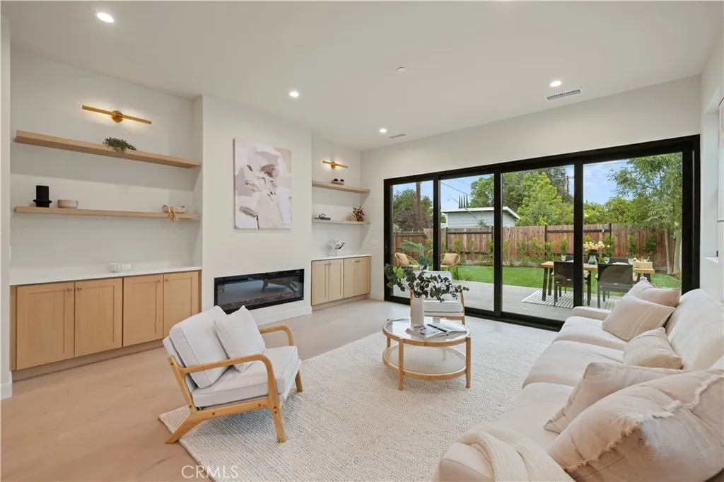 Welcome to this stunning custom-built home in Encino, perfectly situated on a generous lot! This organic modern 4-bedroom, 3.5-bath residence offers nearly 2,500 sq ft of beautifully designed living space with an open-concept indoor/outdoor layoutperfect for entertaining. From the moment you arrive, the wide frontage impresses with its expansive driveway and striking front entrance. Step inside and youll be greeted by a bright, airy floor plan that immediately sets the tone for sophisticated living. The formal living room at the front of the home is ideal for elegant gatherings, while the expansive great room offers the ultimate space for hosting luxurious indoor/outdoor events. The kitchen is a true showpiece, featuring floor-to-ceiling wood cabinetry, exquisite Taj Mahal quartzite countertops, and a full walk-in pantry. Adjacent to the kitchen, the sun-drenched dining area seamlessly connects to an oversized family room, where built-ins, custom shelving, and a cozy fireplace create the perfect evening retreat. Panoramic sliding doors open to a spacious deck and large backyard, creating effortless flow and extending your living space outdoors. The extra-large primary suite is a private sanctuary, complete with a walk-in closet and a luxurious spa-style bathroom featuring a double vanity and oversized shower. A secondary suite includes its own private bathroom, while two additional spacious bedrooms share a beautifully appointed bathroom at the front of the home. A separate laundry room and stylish powder room round out the interior amenities, offering total convenience and