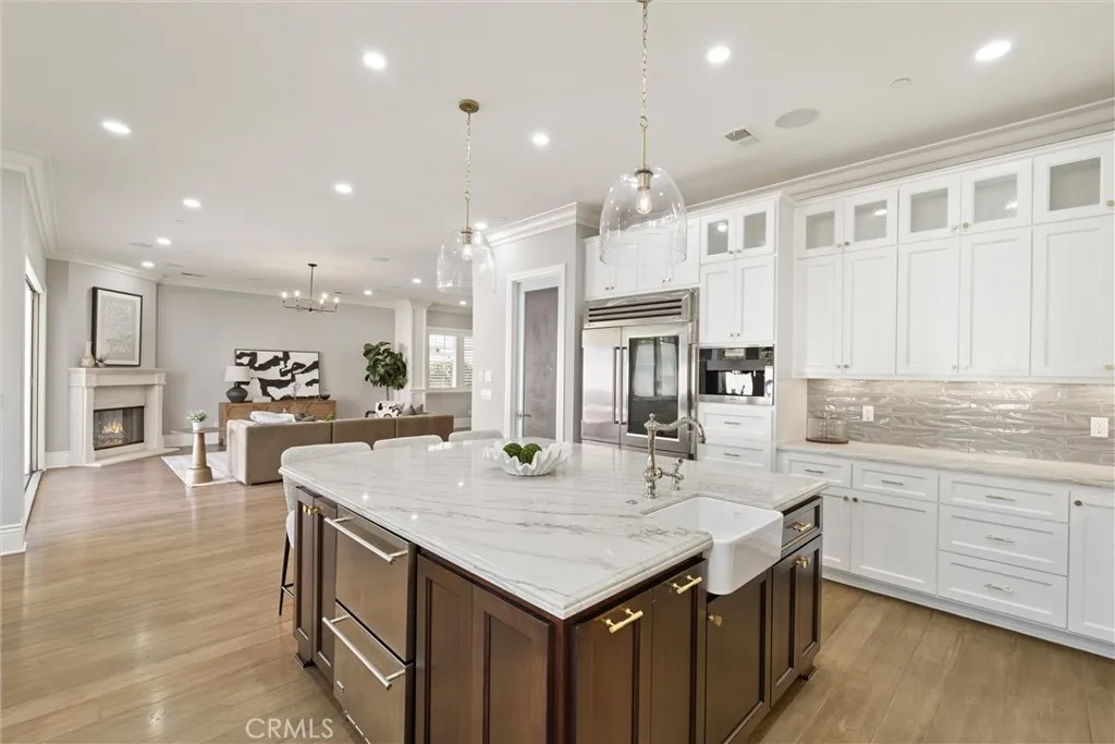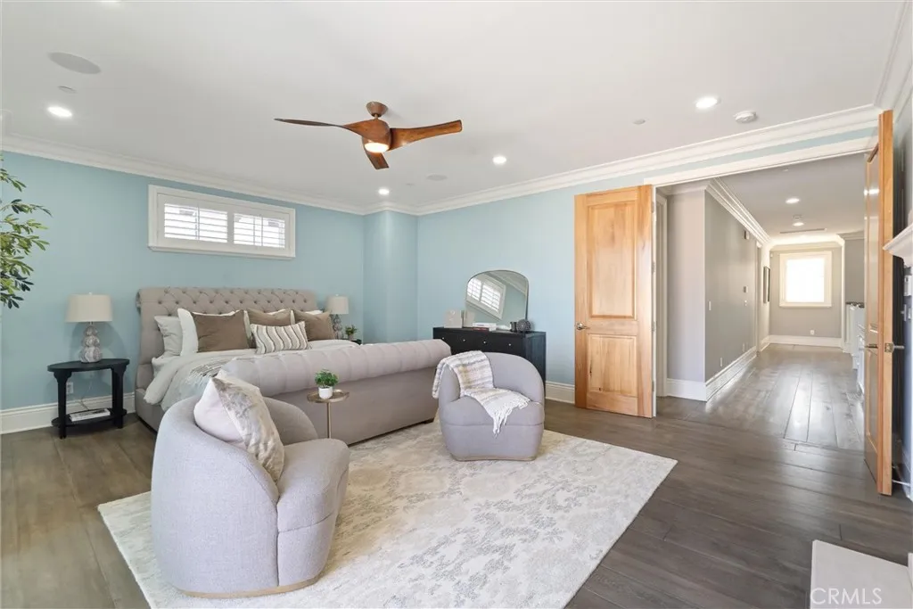 Discover a rare opportunity for refined living in this newly updated Manhattan Beach custom residence, thoughtfully refreshed with an interior designer's touch. Located on a desirable street, this home masterfully blends coastal elegance and functional design with its sophisticated interiors and a magnificent outdoor space. The property features 5 bedrooms and 4 beautifully appointed bathrooms in 4,431 sf of living space. Rich French oak floors and tasteful crown molding flow throughout, creating an atmosphere of warmth and timeless elegance. Modern amenities like an integrated sound system, outdoor security cameras, central vaccum system, a dedicated theater room, and a convenient laundry room, and a three-car garage enhance daily living. The stunning Chef's kitchen, designed for discerning tastes is appointed with high-end appliances such as a Sub-Zero fridge, a professional-grade six-burner Thermador stove, an integrated Miele espresso maker, a Villeroy & Boch prep sink, complemented by an expansive quartzite island, abundant counterspace, and a generous walk-in pantry. The propertys true highlight is the expansive, sun-drenched backyarda rare Manhattan Beach feature. Surrounded by mature trees for privacy, this space is a resort-style paradise centered around a stunning heated pool and spa with a fun waterfall feature, outdoor shower, designated bathroom, bocce court, pizza oven, a spacious green area, and a comfortable seating space with a fireplace and TV. This property offers an unparalleled retreat from the daily hustle. It is a quiet, private legacy property where