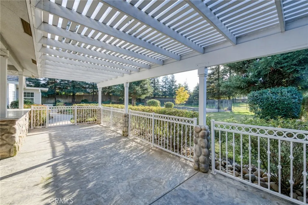 On the market for the first time! This stunning single-story 5-bedroom, 4-bath custom home sits on over 2 fully landscaped acres in a private gated community offering both tranquility and convenience just minutes from local amenities. Thoughtfully designed for comfort and entertaining, the home welcomes you with a charming covered wrap-around porch leading into spacious, light-filled interiors. Enjoy two generous living areas and an inviting eat-in kitchen with double ovens, an island, and abundant prep space. The formal dining room captures picture-frame views of the beautifully manicured grounds, setting the scene for memorable gatherings. An isolated bedroom and full bath create a private retreat ideal for guests, extended family, or a quiet home office. The expansive bonus room offers flexibility as a game room, media space, or fifth bedroom, with access to a cozy enclosed sunroom. Recent upgrades include owned solar, a new well filter system, a 3-year-old well pump, and a brand-new storage tank (2025). Step outside to your own private park complete with a separately fenced pool, putting green, and broad stretches of lush lawn perfect for recreation or hosting unforgettable outdoor events. The 4-car garage provides ample room for vehicles, hobbies, and storage. A rare combination of space, serenity, and sophistication this remarkable property invites you to relax, entertain, and live beautifully.
