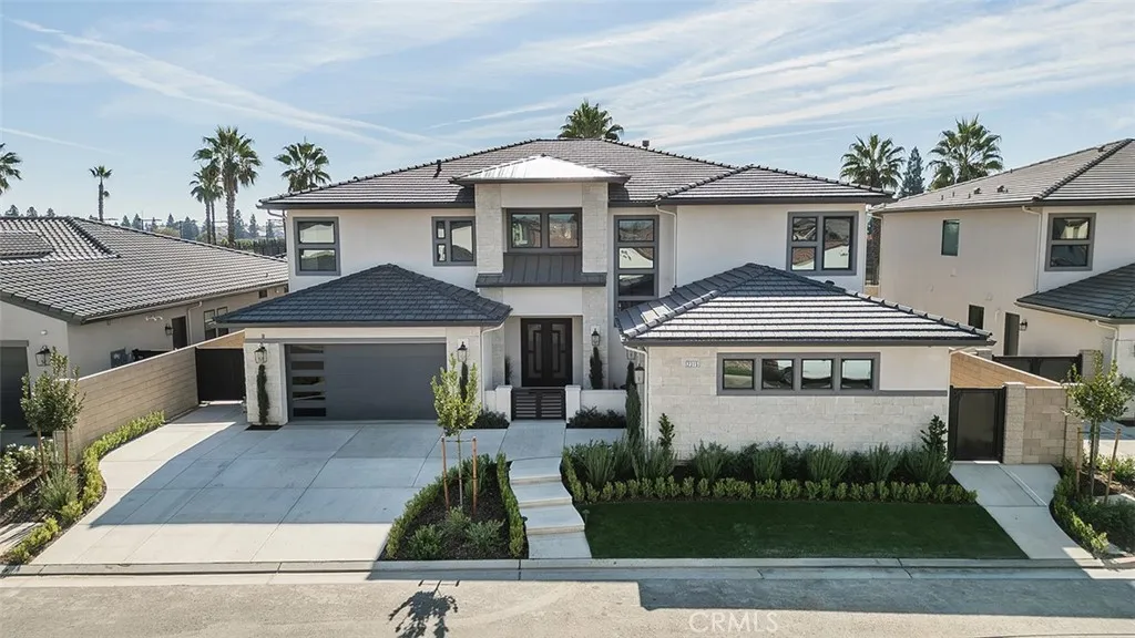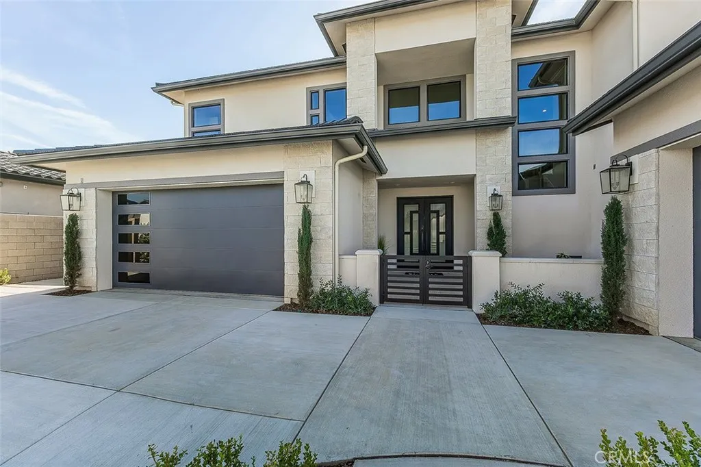 Stunning Prairie Modern home by Gary McDonald Homes located in the prestigious gated Club View Collection. As you approach, a double wrought-iron gate welcomes you into a private courtyard, setting the tone for what awaits inside. The custom wrought-iron security doors feature operable double frosted glass panels, blending elegance with functionality. The grand foyer with transom windows opens to a two-story Great Room with a dramatic bridge overlook, cozy fireplace, surround sound, and built-in entertainment niche. The gourmet kitchen is a chef's dream with high-end appliances, Kitchen Craft cabinetry including a pull-out spice rack, and ONE Quartz Calacatta Alabaster countertops and full-height backsplash to the ceiling. The 2nd kitchen is the entertainer's pantry with high-end stainless steel appliances including a gas stove, exhaust hood, fridge and dishwasher. There is a Media Room with surround sound system, a walk-in closet and a sliding door to the covered patio. There is a bedroom, powder bath, and an en-suite bedroom suite downstairs. On the second floor, the primary bedroom suite and three secondary bedrooms are connected by the beautiful bridge. The luxurious primary suite features high ceiling with stunning crown moulding with a sliding door to the covered balcony, a spa-style bath with soaking tub, frameless glass shower, dual vanities, and two walk-in closets with closet organizers. Another en-suite bedroom by the stairwell. The other two bedrooms share a Jack & Jill Bathroom. A beautifully designed laundry room with a laundry sink complete this exceptional h