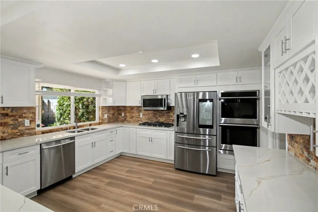 Welcome to 12522 Bubbling Creek Lane, The Vera Cruz model, a beautifully renovated 4-bedroom, 2.5-bathroom detached home nestled within one of Cerritos most desirable communities Granada Park a planned urban development. Step through the front door into a light-filled interior featuring vaulted ceilings, luxury laminate wood flooring, recessed lights and an open floor plan that seamlessly connects the living room, formal dining area, step down family room, and kitchenperfect for modern living and entertaining. The kitchen has recently been completely remodeled and is a must-see. Please look at the photos. A dramatic showcase staircase leads upstairs to all four bedrooms, including an expansive primary suite with a private bath, walk-in closet and parents retreat with custom built-in bookshelf cabinetry, plantation shutters, plus an oversized front bedroom ideal as a guest room, large playroom, entertainment room or home office. With approximately 2,661 sq ft of living space on a 4,803 sq ft lot, and new permitted electrical panel, this home also offers two full baths upstairs and one downstairs, a separate laundry room, and a two-car front-facing attached garage for convenience and one year AHS home warranty! Relax in the backyard with private access to the gated HOA community ~5 to 7 acres greenbeltoffering 4 tennis courts, scenic walking paths, and Central Satellite Park. Experience comfort, space, and exclusive amenities in this one-of-a-kind, move-in ready home. Ideally located near the Los Cerritos Center, Cerritos Library, Performing Arts Center, and scenic parks such
