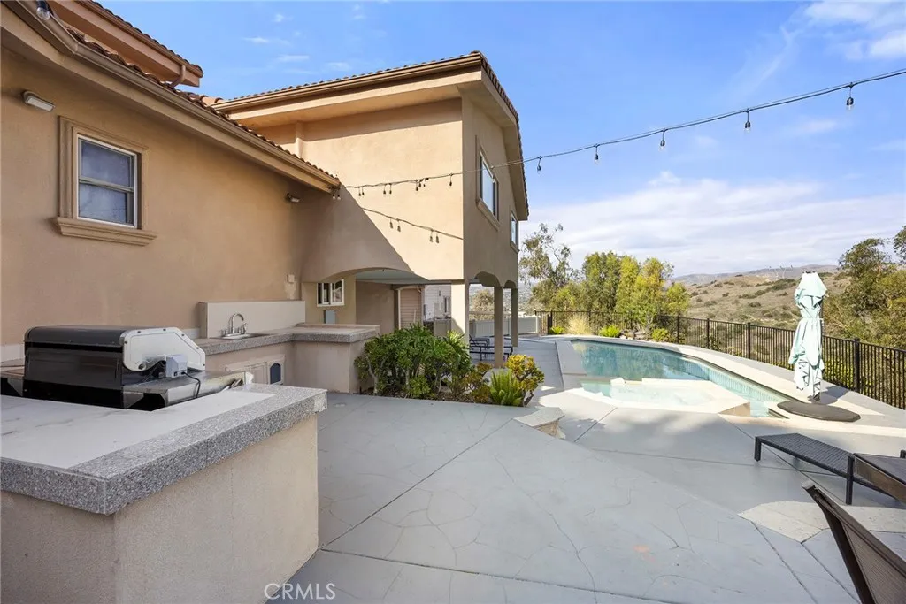 MULTI GENERATIONAL LIVING with 4,600 SF main residence and a separate 2900 sqft of guest house and apartment!!! Commanding a premier hilltop setting with panoramic views that stretch across rolling hills, majestic mountains, and the shimmering lights of the city below, this custom Mediterranean estate resides on almost an acre and has the room and seclusion you are looking for. A grand two-story entry opens to a symphony of space and light, where walls of glass finished with rich plantation shutters, invite natures beauty indoors. The interiors are a masterful balance of warmth and sophistication, featuring stone and wood flooring, dramatic volume ceilings, a versatile floorplan that suits everyones needs with a seamless flow between living and entertaining spaces. The formal living and dining rooms exude timeless elegance, while the separate family room offers an inviting fireplace to gather round. The gourmet kitchen is centered and completely open to the living space with an abundance of areas for meal prep and appointed with granite counters, professional-grade stainless appliances, and a large walk-in pantry. The main residence features two primary suites (main floor and 2nd floor), each with a private retreat with spa-inspired baths and custom detailing. Four additional bedrooms provide generous accommodations for family or guests; each with uniquely designed finishes and an abundance of natural light. Stepping outdoors to your own private oasis, you will discover a sparkling pool and spa, a warming fire pit for chilly evenings, an outdoor BBQ center and a covered din