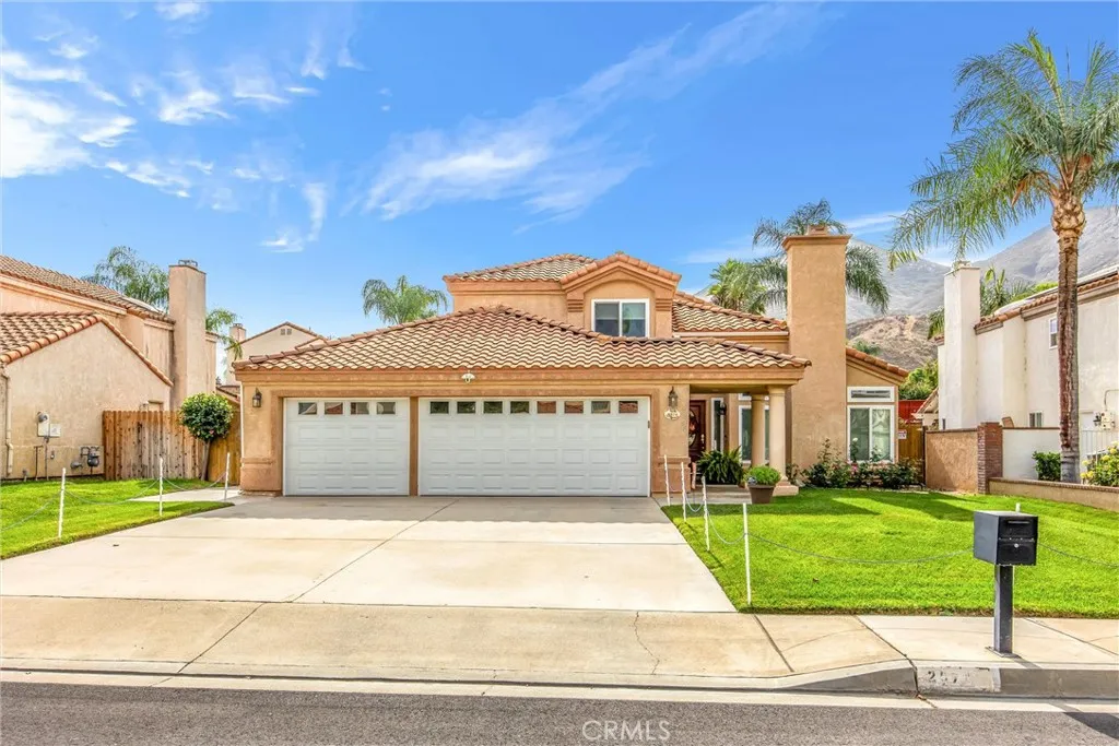 Stunning Home with Paid-Off Solar, Mountain Views & Multi-Gen Flexibility. Welcome to 2574 Carbon Court, located on a quiet cul-de-sac in the desirable Reche Canyon Country Estates. This spacious 4-bedroom, 3-bathroom single-family home offers over 2,000 sq. ft. of living space, designed for families, guests, and multi-generational living. Inside, youre greeted by vaulted ceilings, neutral paint tones, and an open-concept layout featuring two living rooms, each with abundant natural light and a fireplace. A dining room is adjacent to the formal living room, creating a seamless space for entertaining. Additional highlights include upgraded dual-pane windows, porcelain tile floors throughout the first floor, wood laminate in the formal living area, and a skylight that brightens the home. The updated kitchen is both stylish and functional, with new stainless steel appliances, quartz countertops, soft-close white cabinets, a farmhouse sink, generous counter space, and a breakfast nookperfect for everyday living or entertaining. Three bedrooms are located upstairs, including a primary suite offering comfort and organization with dual closets, one of which is a custom-designed space with organized shelving and a shoe rack. The primary bathroom includes a dual-sink vanity, tub and shower combo, and dual shower heads with a rain feature, plus a dedicated space prepped for a stackable washer/dryer (currently used for storage). The remaining upstairs bedrooms share a Jack-and-Jill bathroom with a dual-sink vanity and a full bath. A downstairs bedroom with a full bath provides conveni