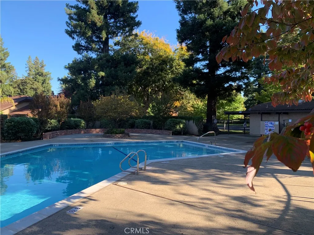 Wonderful, quiet Chico location in the lovely Woodcrest complex, where youre surrounded by mature, lush landscaping and beautiful redwoods. This charming condo offers 3 spacious bedrooms and 2.5 bathrooms, along with a welcoming layout that feels warm and inviting from the moment you step inside. The living room features high ceilings and a gorgeous brick fireplace that truly anchors the space. The kitchen is adorable and perfect for entertaining, offering a cozy dining nook plus an additional room that connects to the kitchenideal as a formal dining room, office, or comfortable sitting area. Upstairs are two generous guest bedrooms and a guest bathroom with new flooring. The large primary suite features a dual-sink vanity, lots closet space, and new flooring as well. One of the best highlights is the incredible, oversized fully gated and covered patioyour own private retreat. Relax in the hot tub or unwind while enjoying the peaceful, beautifully landscaped surroundings. Additional features include a two-car attached garage and access to the community pool, perfect for cooling off during Chicos hot summers. Close to shopping and everyday conveniences, this condo is ready to become a beautiful place to call home!