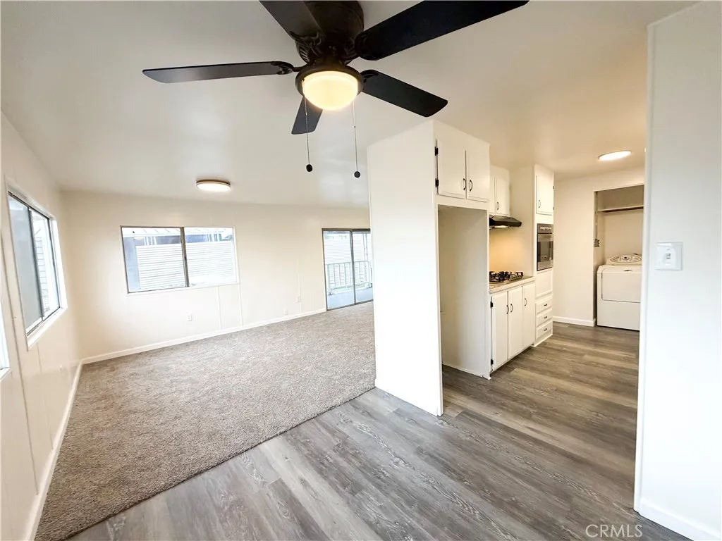 Welcome to King Arthur Mobile Estates, a charming all-age community in Riverside. This beautifully remodeled 2-bedroom, 2-bath home features numerous upgrades, including new carpet, flooring, interior paint, gas cooktop, built-in oven, dishwasher, farmhouse-style kitchen sink, countertops, and updated fixtures throughout. Enter from the covered side patio into a spacious living room that flows seamlessly into the dining area and kitchen. The convenient laundry area, complete with a full-size washer and dryer, is located just off the kitchen. The primary bedroom offers an en-suite bathroom with a walk-in shower, while the second bedroom is generously sized and adjacent to a full bath with a shower/tub combo. Additional highlights include a roomy lot with a large yard, a gas water heater, and an upcoming split HVAC unit installation for added comfort. Home Inspection has been done, and all repairs have been completed