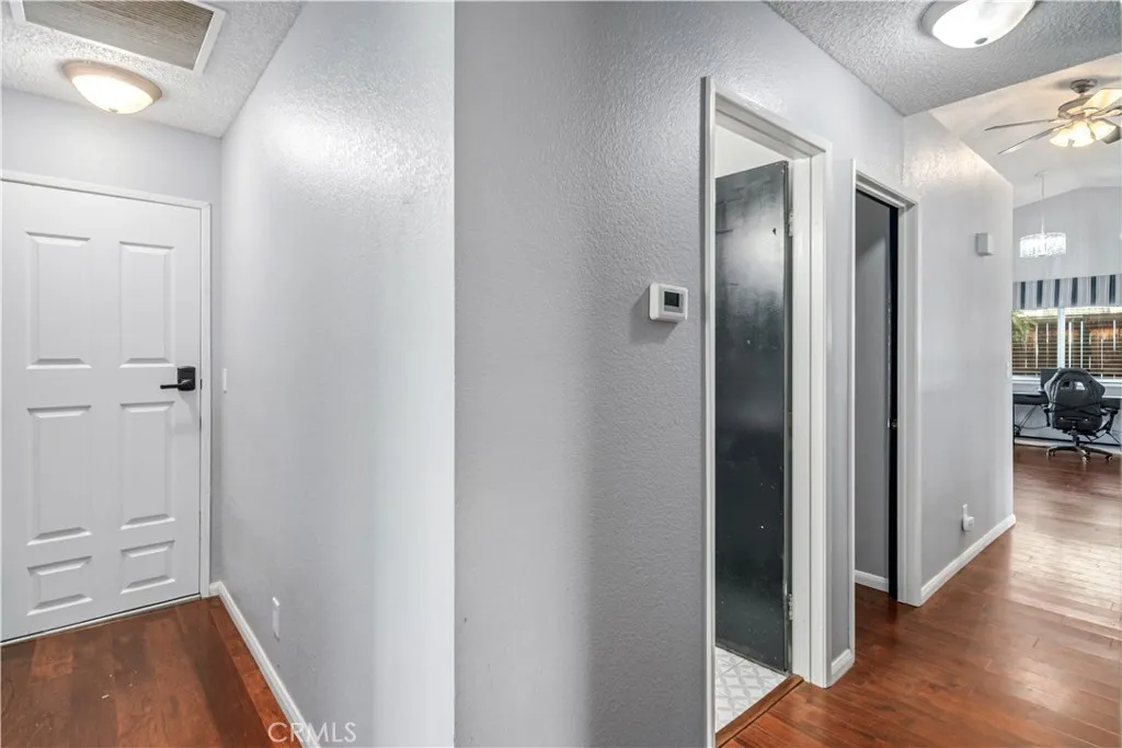 Welcome to the light-filled formal living and dining room, featuring vaulted ceilings, laminate wood flooring, and an attached 2-car garage with direct access. The open layout seamlessly transitions into a second living area, currently used as a dining room, which flows effortlessly into the upgraded kitchen. The kitchen boasts designer two-tone cabinetry, stainless steel appliances, a French door leading to the backyard, and a cozy fireplace with a marble-look surround. This beautifully updated home comes with an impressive list of upgrades, including newer windows, a newer heating and AC system with updated ducting, a newer roof, updated flooring, designer interior paint, and a water filtration/softener system. The spacious primary bedroom features a wall-length closet and an additional closet in the en-suite bath. The refreshed primary bathroom includes a dual-sink vanity, a large walk-in shower, updated fixtures, and fresh paint. Both secondary bedrooms are generously sized with ample closet space and share a guest bathroom with a vanity featuring a composite countertop and a designer backsplash. Step outside to your private backyard oasis, perfect for relaxing or entertaining. It features a covered patio, low-maintenance landscaping, and custom concrete-curbed planters, all creating a peaceful setting to take in beautiful sunrises and sunsets. Won't last long call today!!