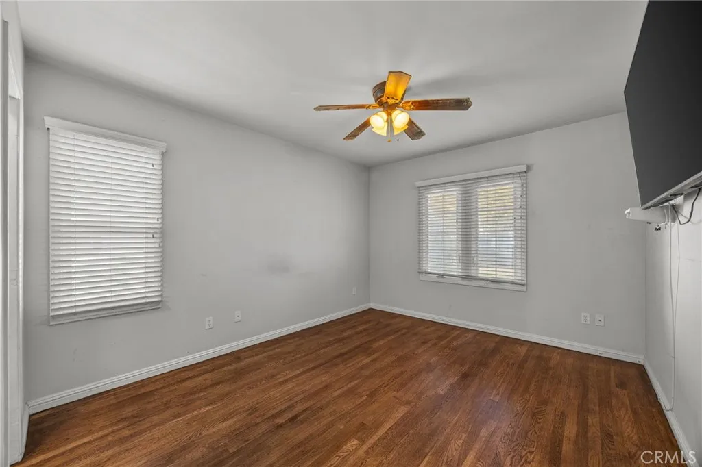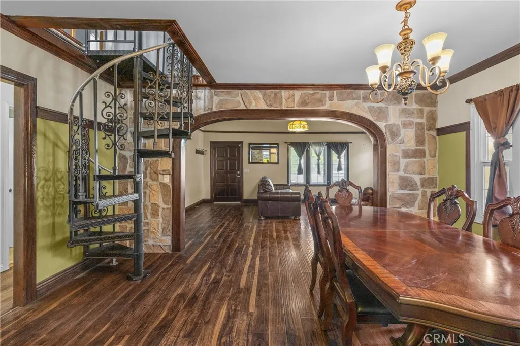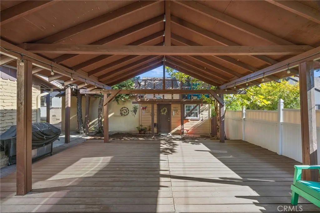 Tudor home in Ontario's Historic Rosewood Court District! This home has the charm and character of the 1920s with modern updates throughout. From the moment you arrive, you'll fall in love with the inviting curb appeal and a welcoming front porch perfect for morning coffee or evening unwinding. Step inside and be greeted by new laminate wood floors, rich wood trim, and a decorative fireplace in the living room. The arched wall leading into the formal dining room has a stone faced wall paneling and in the dining room there is wood paneling which gives a bit of craftsman charm in this Tudor home. In the thoughtfully remodeled kitchen you'll find granite countertops, floating wood shelves, stainless steel appliances, and plenty of built-in pantry space. There is a kitchen island adding more counter space or a perfect spot to put bar stools for casual dining. In the back corner of the kitchen you will find a stacked washer and dryer. There is original restored hardwood flooring in the hallway and the front two bedrooms. Bonus features include a spiral staircase leading up to a finished attic converted to a spacious loft! The loft includes two separate areas that will be great play areas or an in-home office space, a convenient half bath and small kitchenette with a mini fridge and microwave. This area of the home is not included in the square footage of the home since it's not permitted. In the backyard you'll find a beautiful wood deck and patio making this the perfect retreat and space to have guests over. Another bonus with this home is a studio adu behind the garage with a