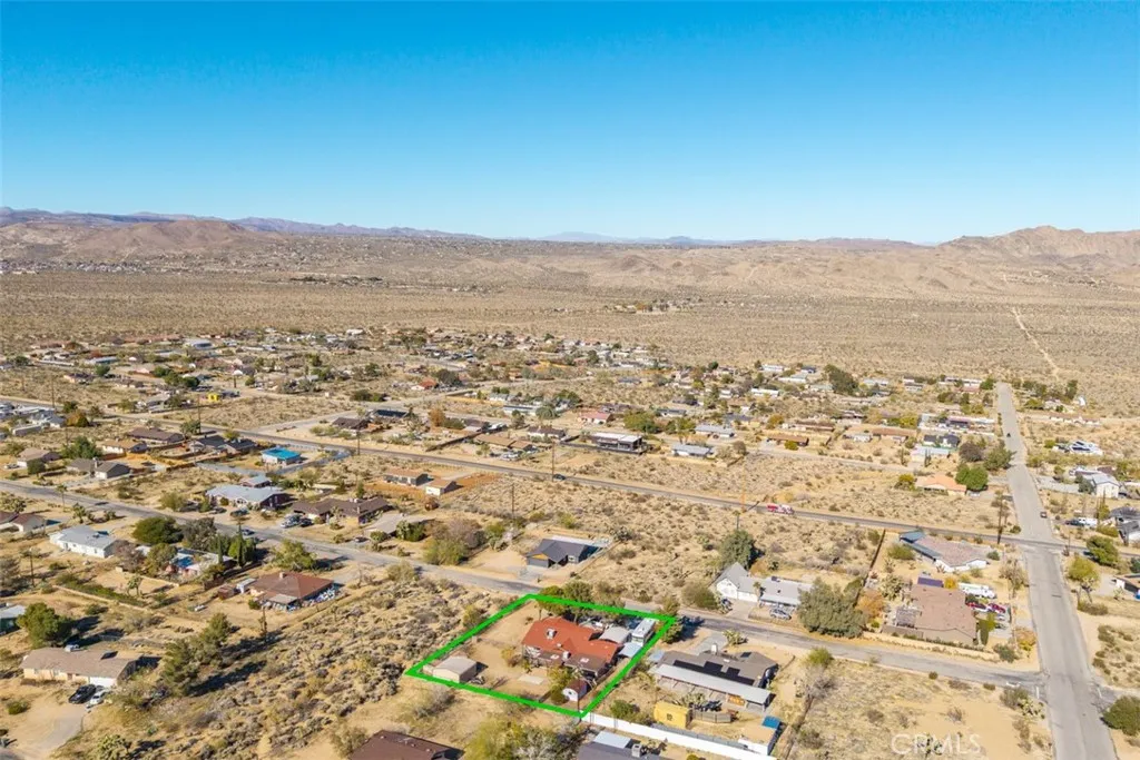 Located in the highly desirable Upper Friendly Hills neighborhood of Joshua Tree, this charming 2-bedroom, 2-bath home offers comfort, space, and an ideal setting just minutes from the entrance to Joshua Tree National Park. Set on a generous lot, the property features a long driveway, gated and fenced front and rear yards, a carport, and a two-car garage with roll-up door, providing excellent parking and storage options. One standout feature is the freshly painted interior, paired with a warm and inviting living room with a wood-burning fireplace, perfect for cozy desert evenings. Inside, natural wood doors add character to both bedrooms, while central HVAC and an additional window A/C unit ensure year-round comfort. The bathrooms retain their classic tile countertops, and recent upgrades include a newer water heater and a convenient hall coat closet. The primary bedroom features an en-suite bathroom with a walk-in shower. The enclosed sunroom adds versatile living space, ideal for relaxing or entertaining, while the backyard offers RV hookups, a pad suitable for a small RV or carport, a storage shed, and double gates for easy access. With mature trees, ample outdoor space, and a quiet neighborhood setting, this home is a fantastic opportunity for a first-time buyer or anyone seeking a manageable desert retreat. Dont miss your chance to own a well-maintained home in one of Joshua Trees most sought-after areas.